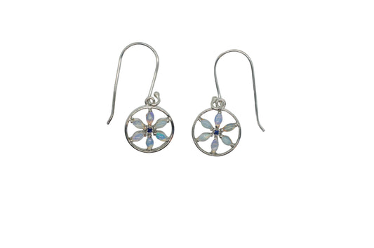 Swiss Blue Topaz L Flower of Life Sterling Silver Necklace