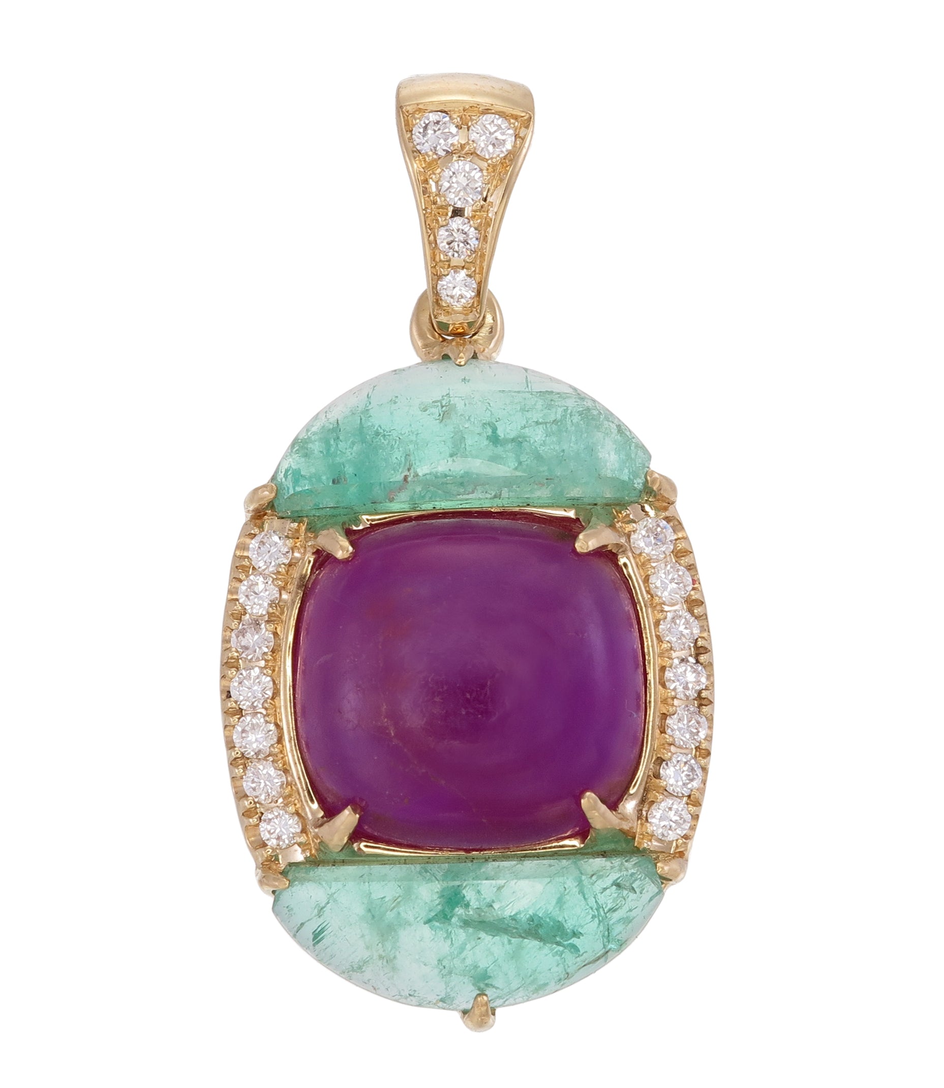 18K Gold Sugilite, Emerald, & Diamond Pendant