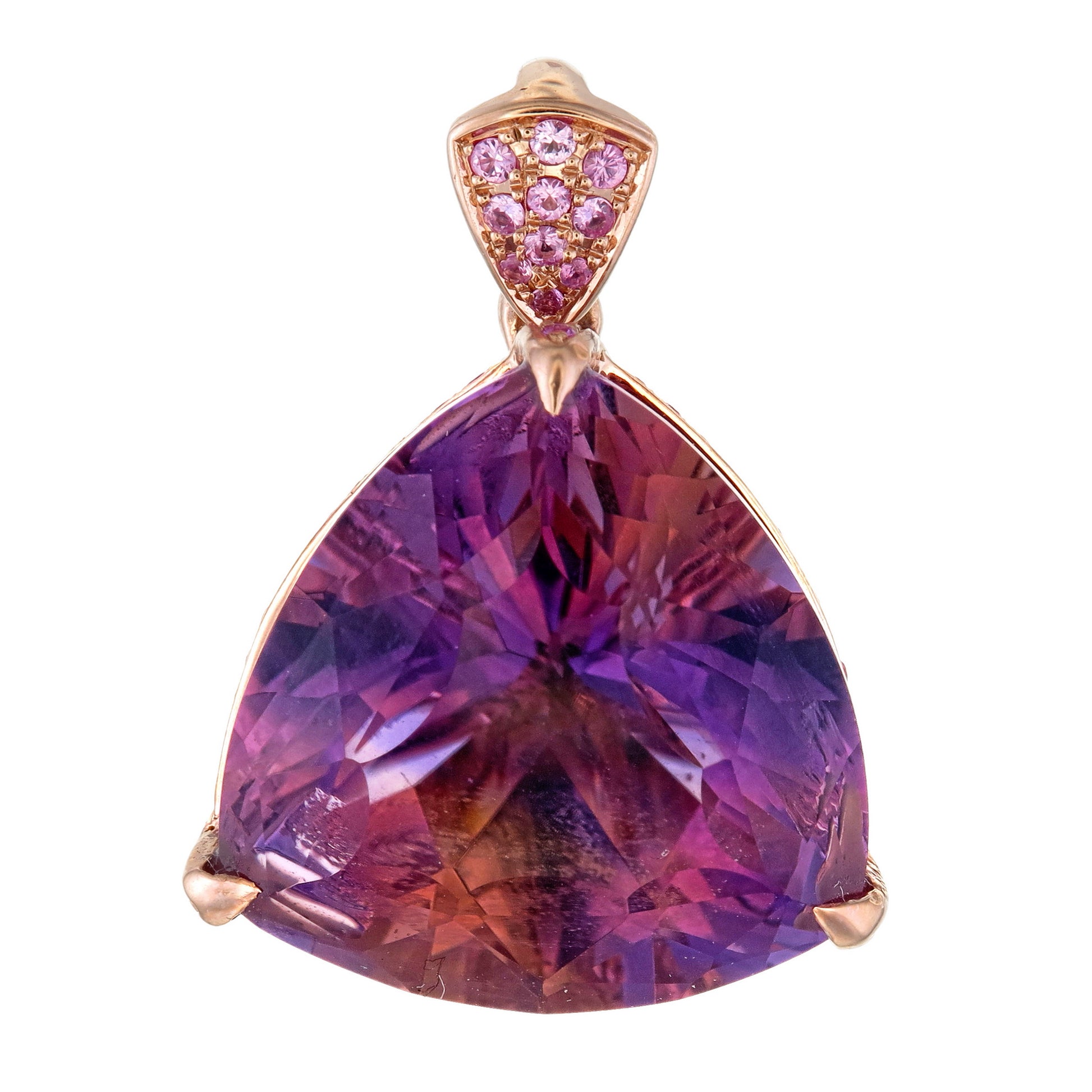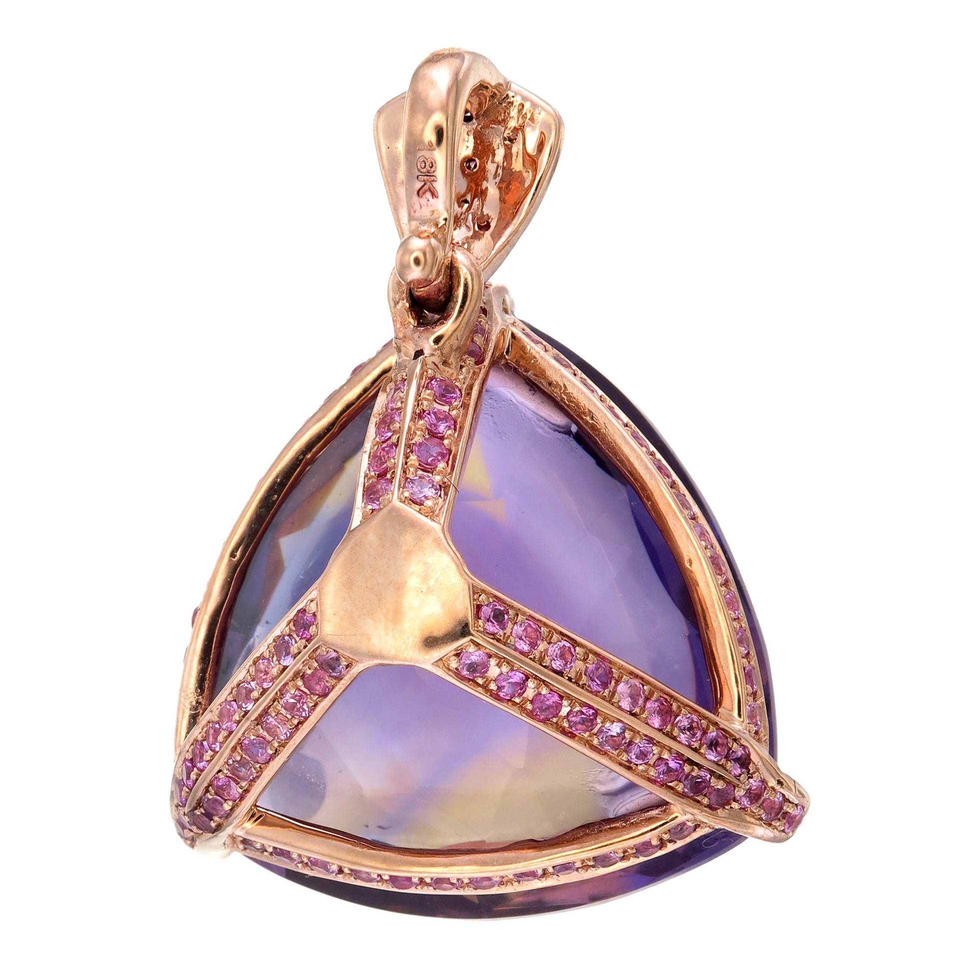 One of the nicest pieces of Ametrine we have seen in years... set in 18k pink gold with 108 pink sapphires.