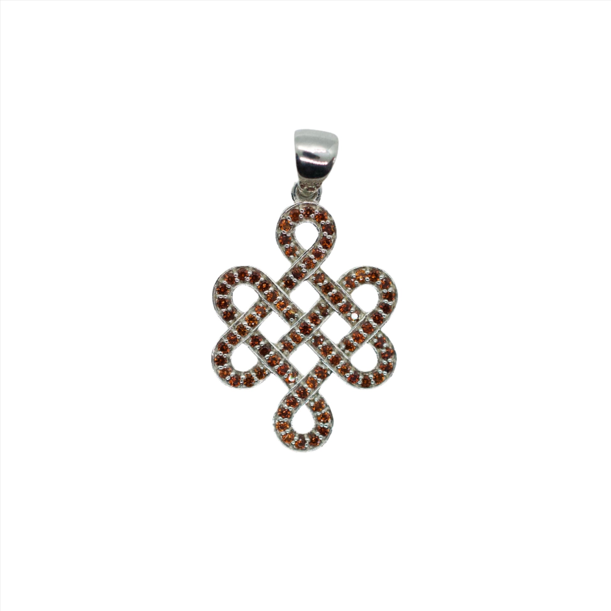 Garnet Shrivatsa Endless Knot Sterling Silver Necklace