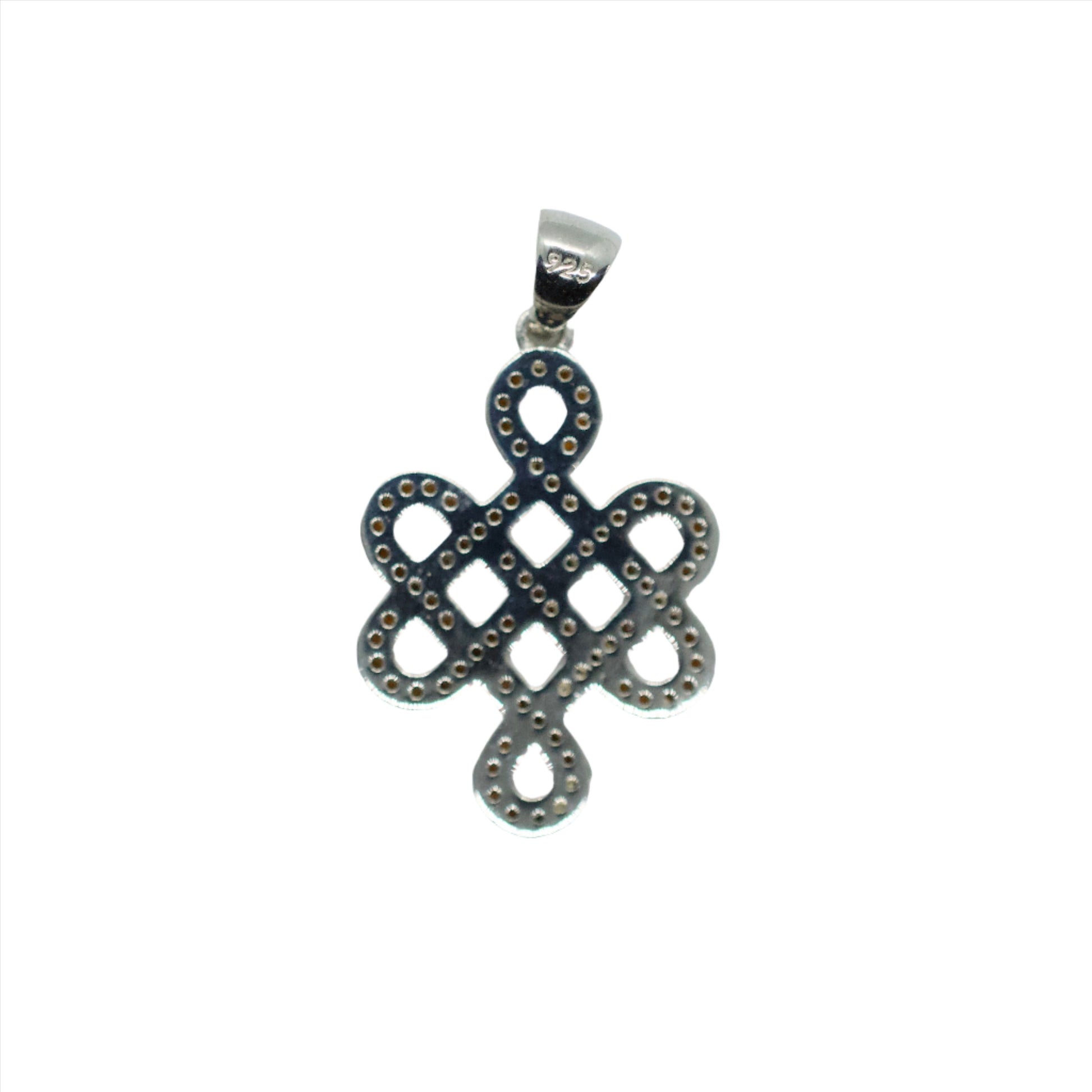 The Endless Knot depicts the nature of reality and our interdependence. Wearing this piece will remind you of your own Buddha nature and the source of endless compassion and wisdom that comes from our interconnectedness.