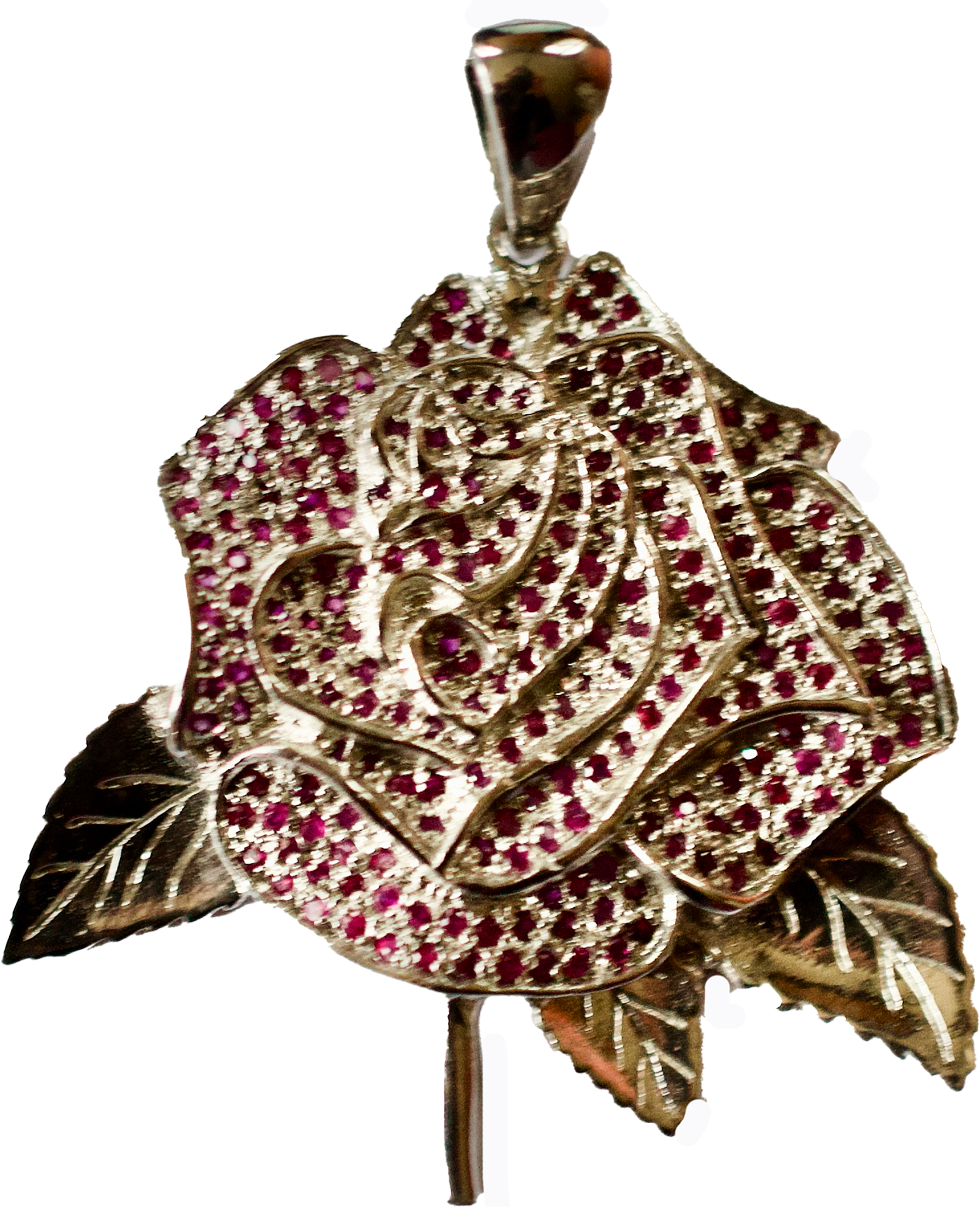 Grateful Dead American Beauty Rose Silver and Ruby Pendant