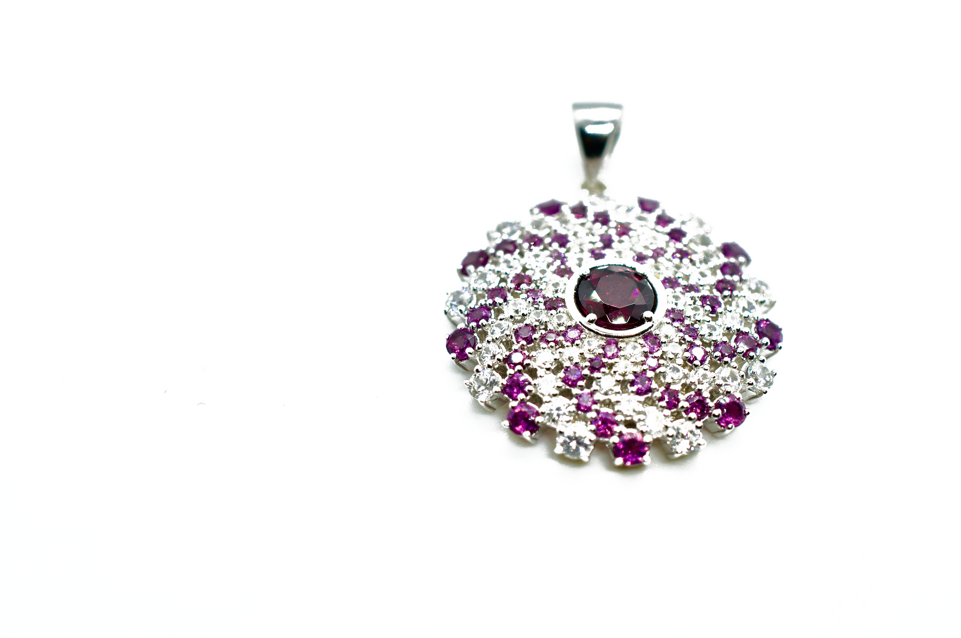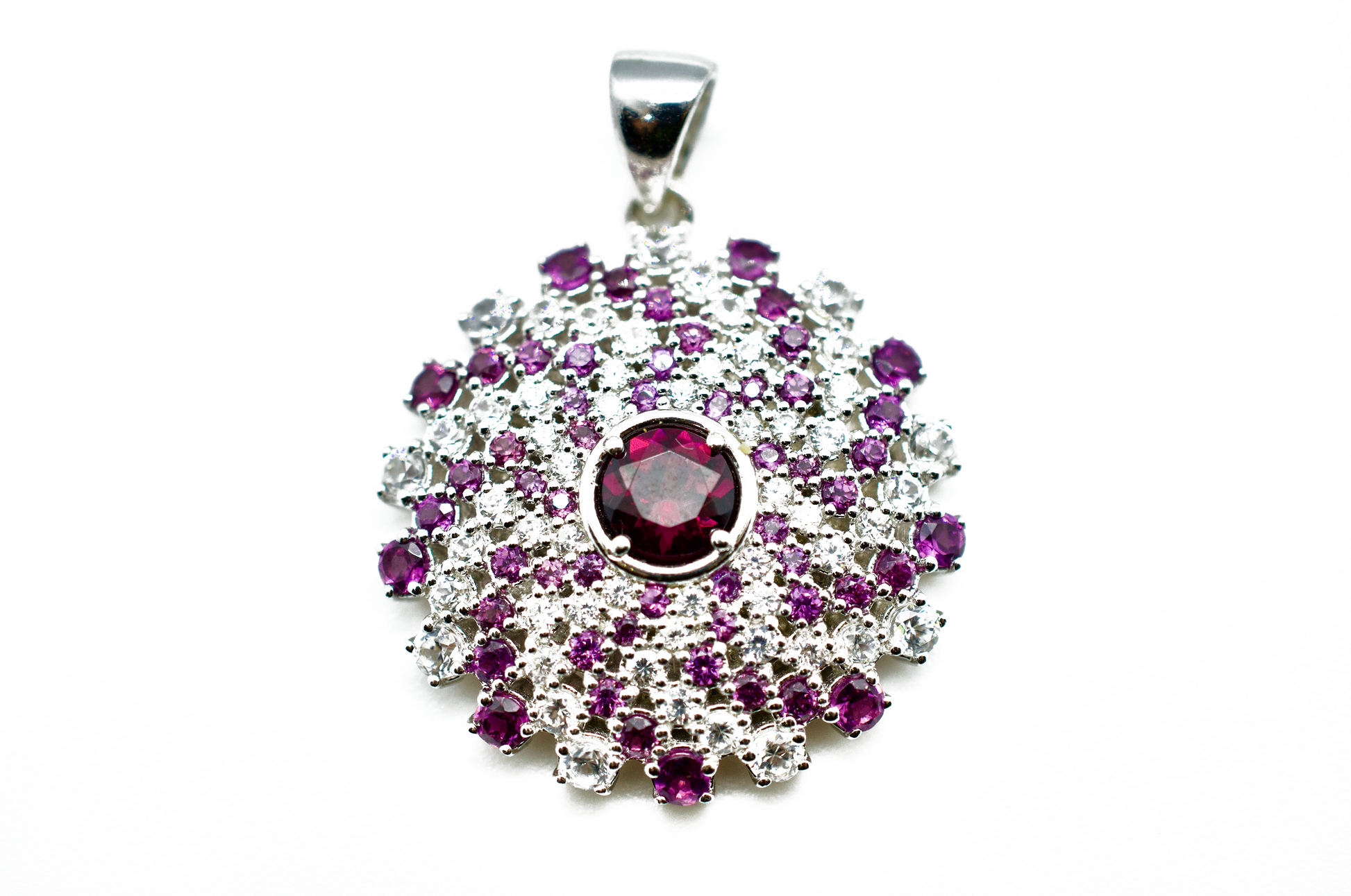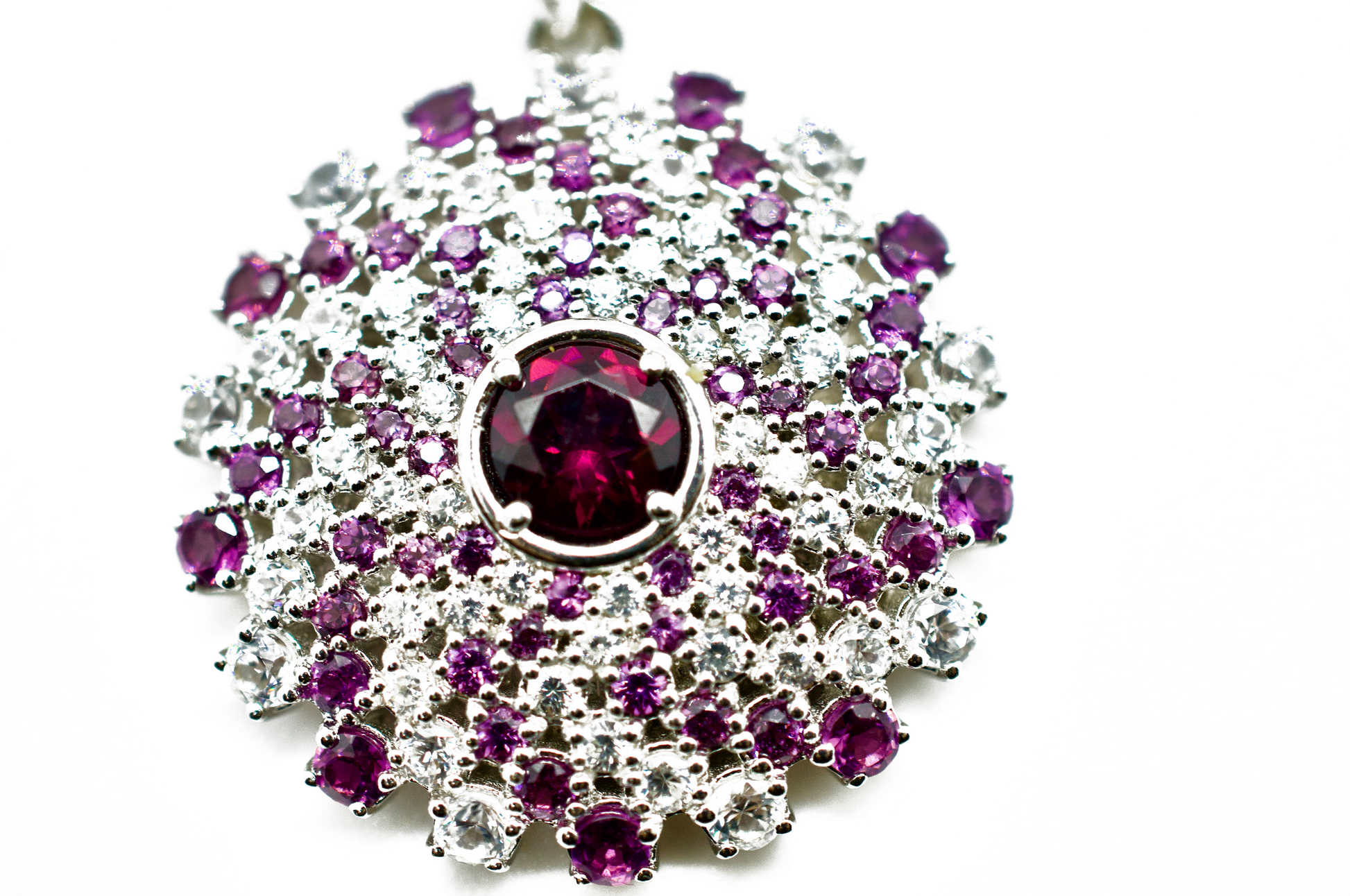 Amethyst & Zircon Sterling Silver Mandala Necklace #1