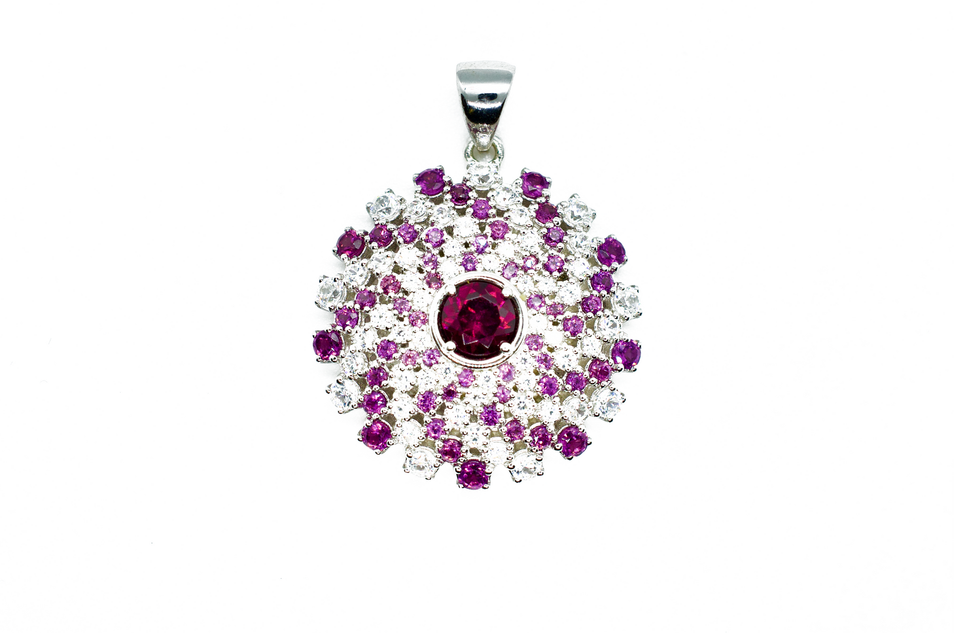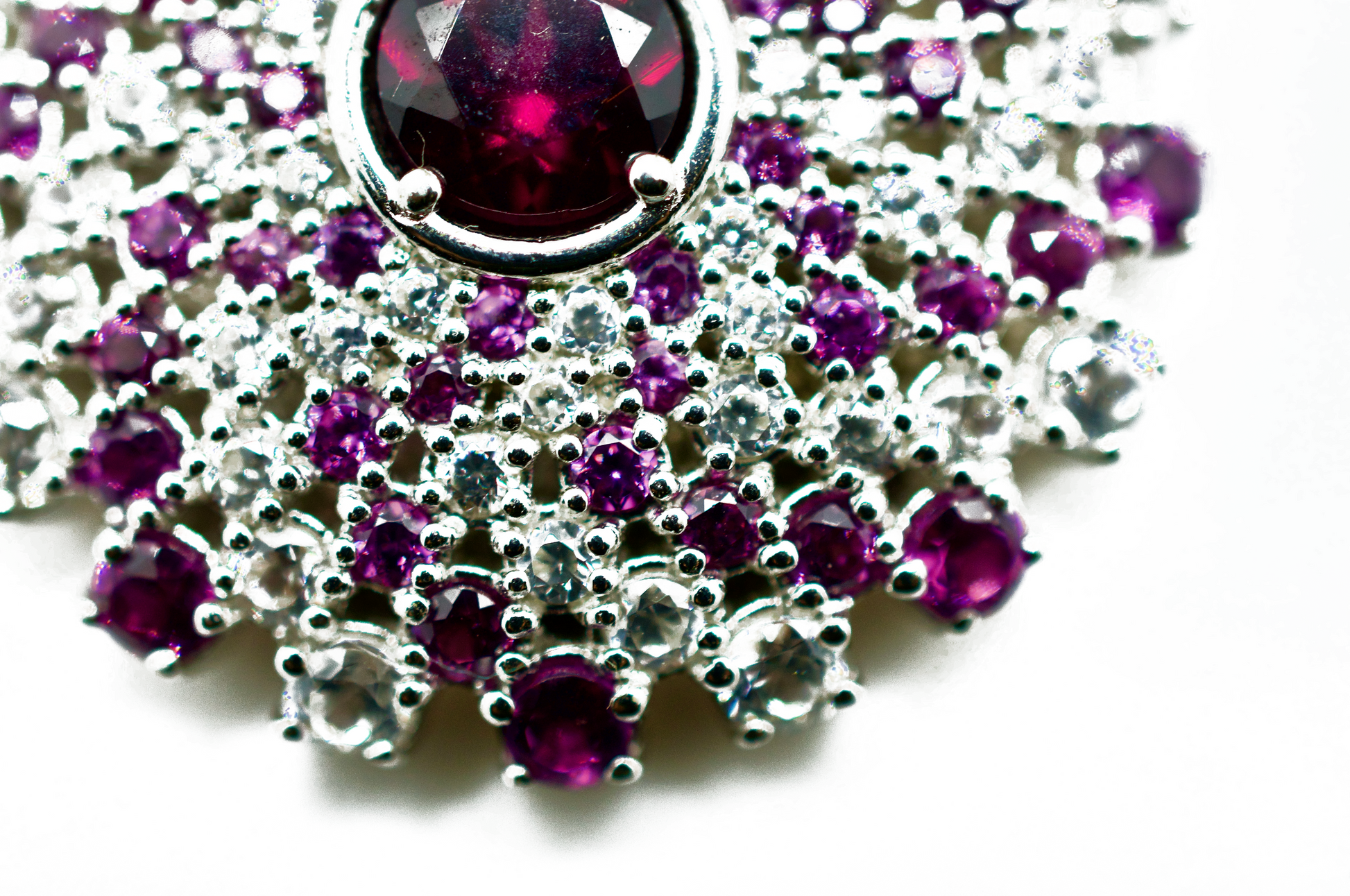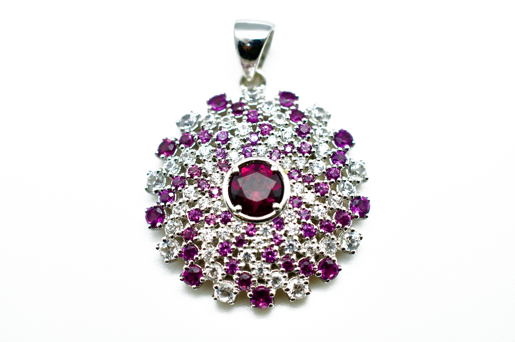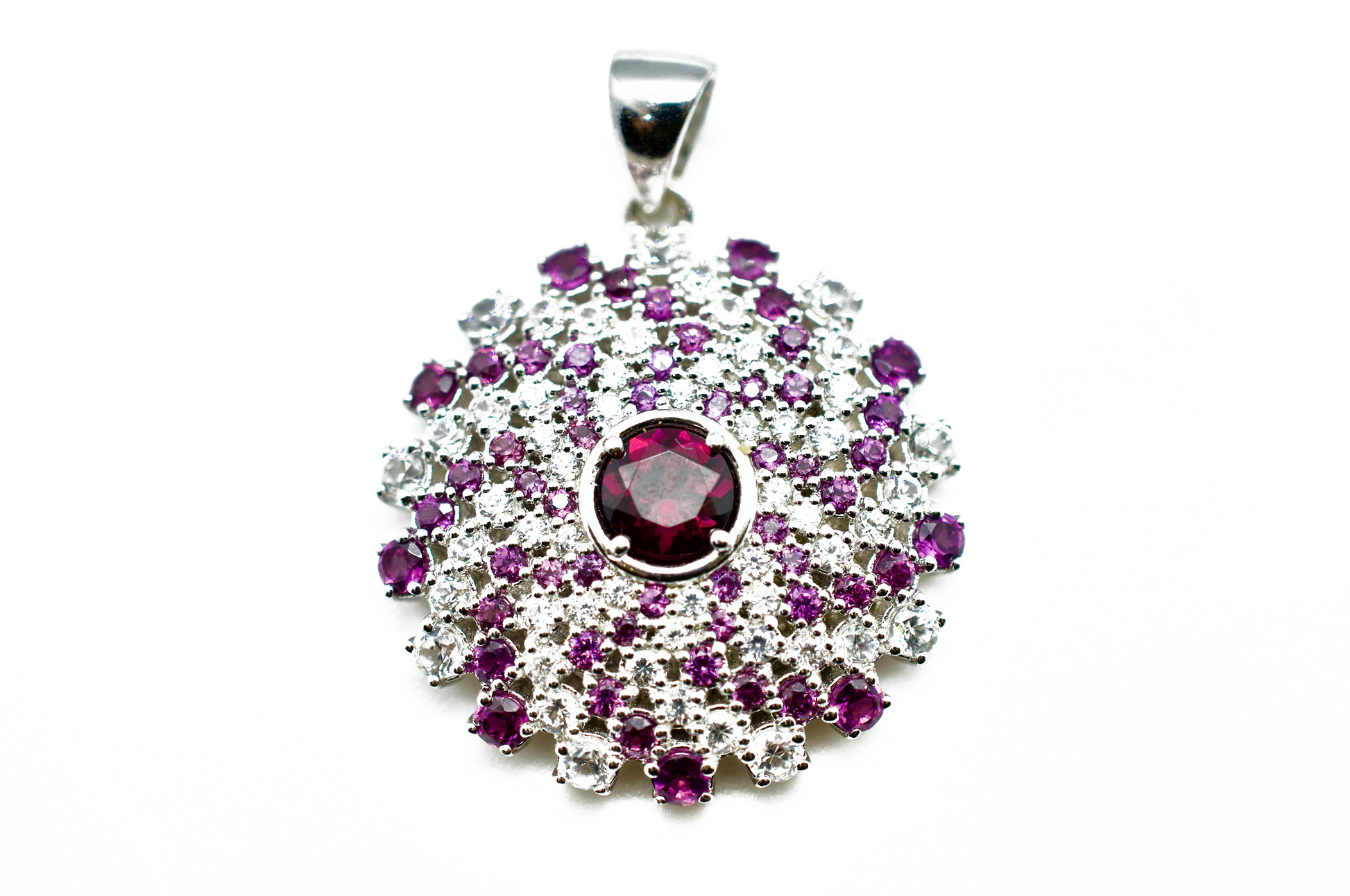 Amethyst & Zircon Sterling Silver Mandala Necklace #1