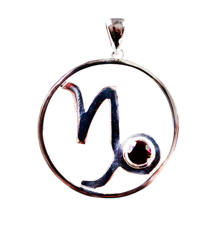 Capricorn Astrology Horoscope Zodiac Silver & Garnet Necklace