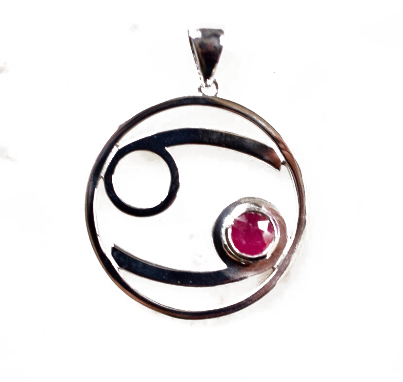 Cancer Astrology Horoscope Zodiac Silver & Ruby Necklace