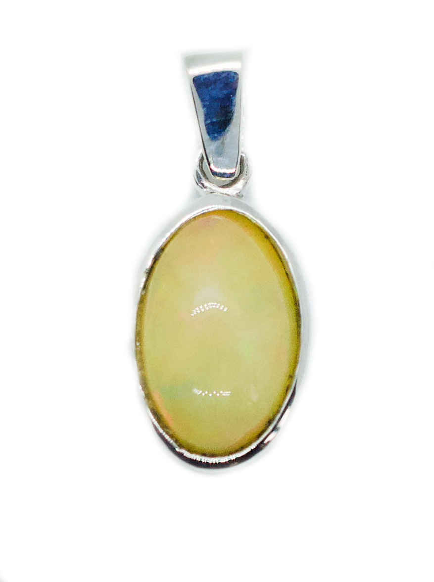 This beautiful little Ethiopian opal is set in sterling silver. Ancient Romans thought that opals were the most powerful gemstones because they contain so many colors. Bedouins believed opals contained lightning.