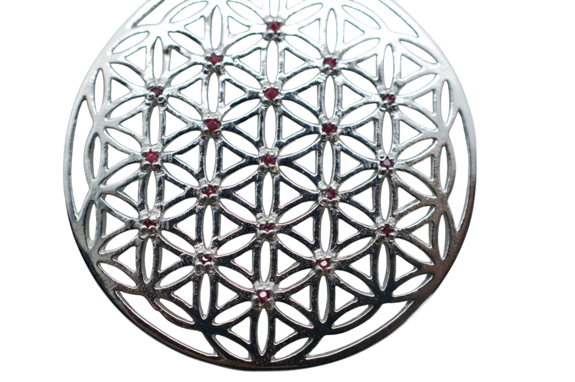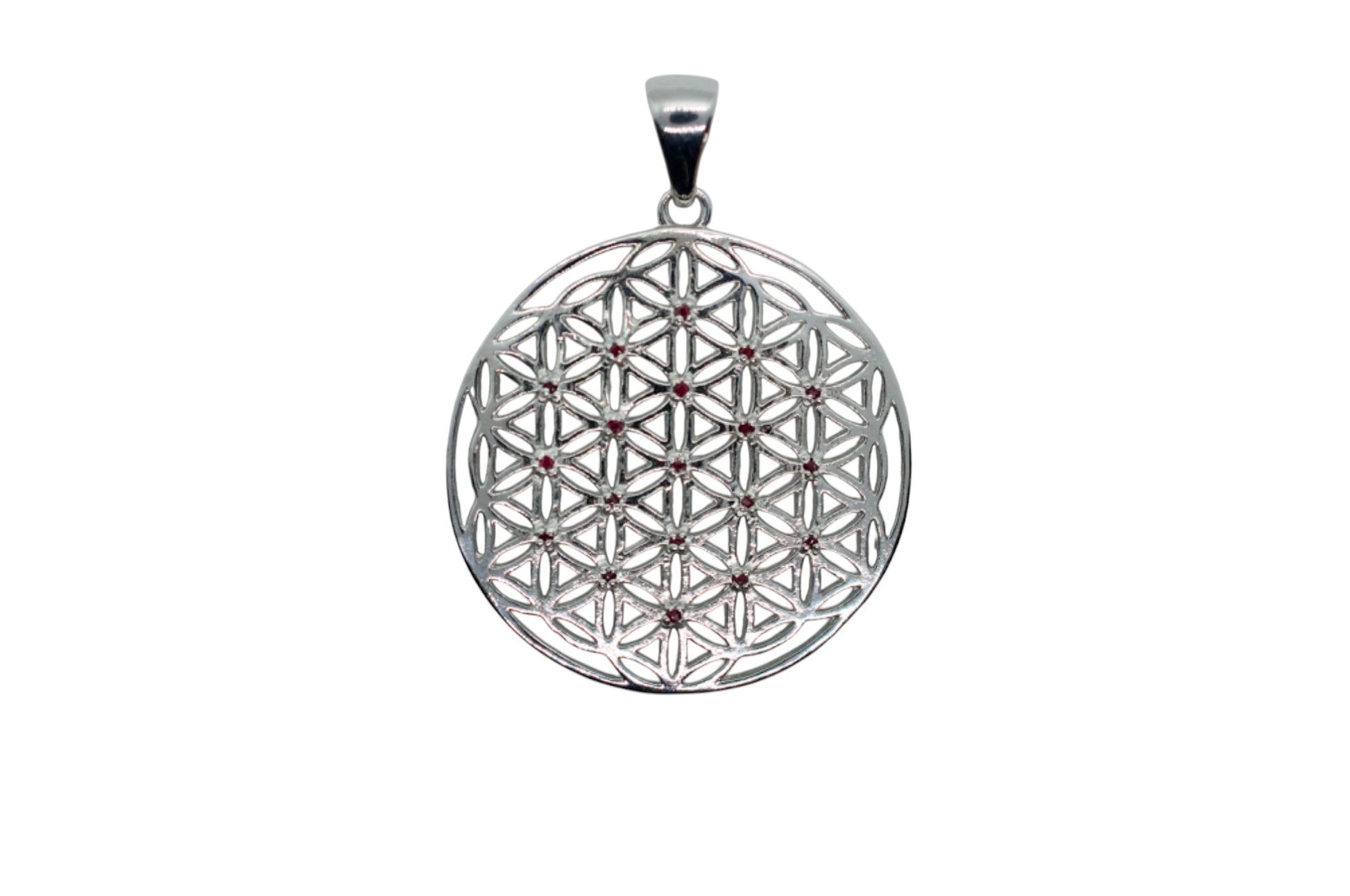 Seed Garnet Silver Flower of Life Necklace