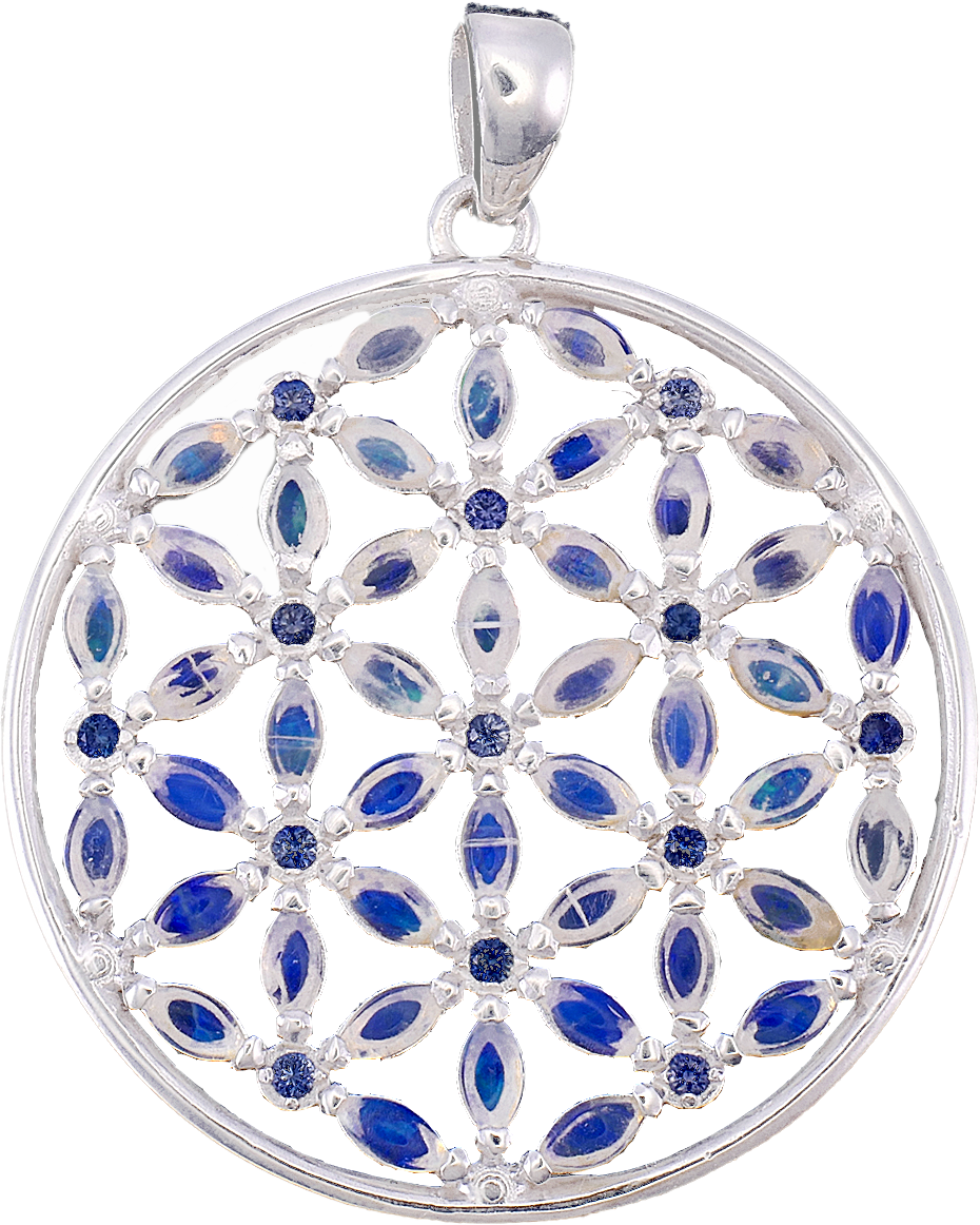 Luminous Opal & Sapphire Flower of Life Pendant Small Version
