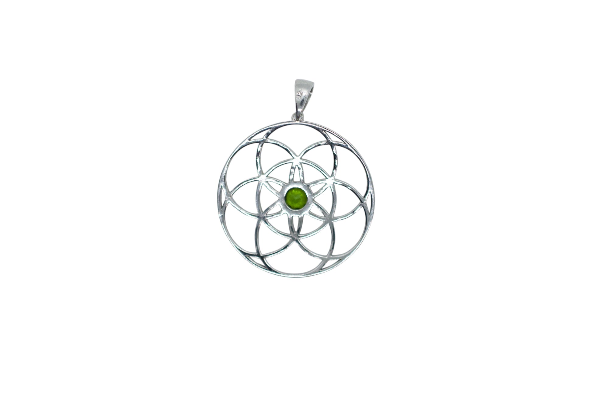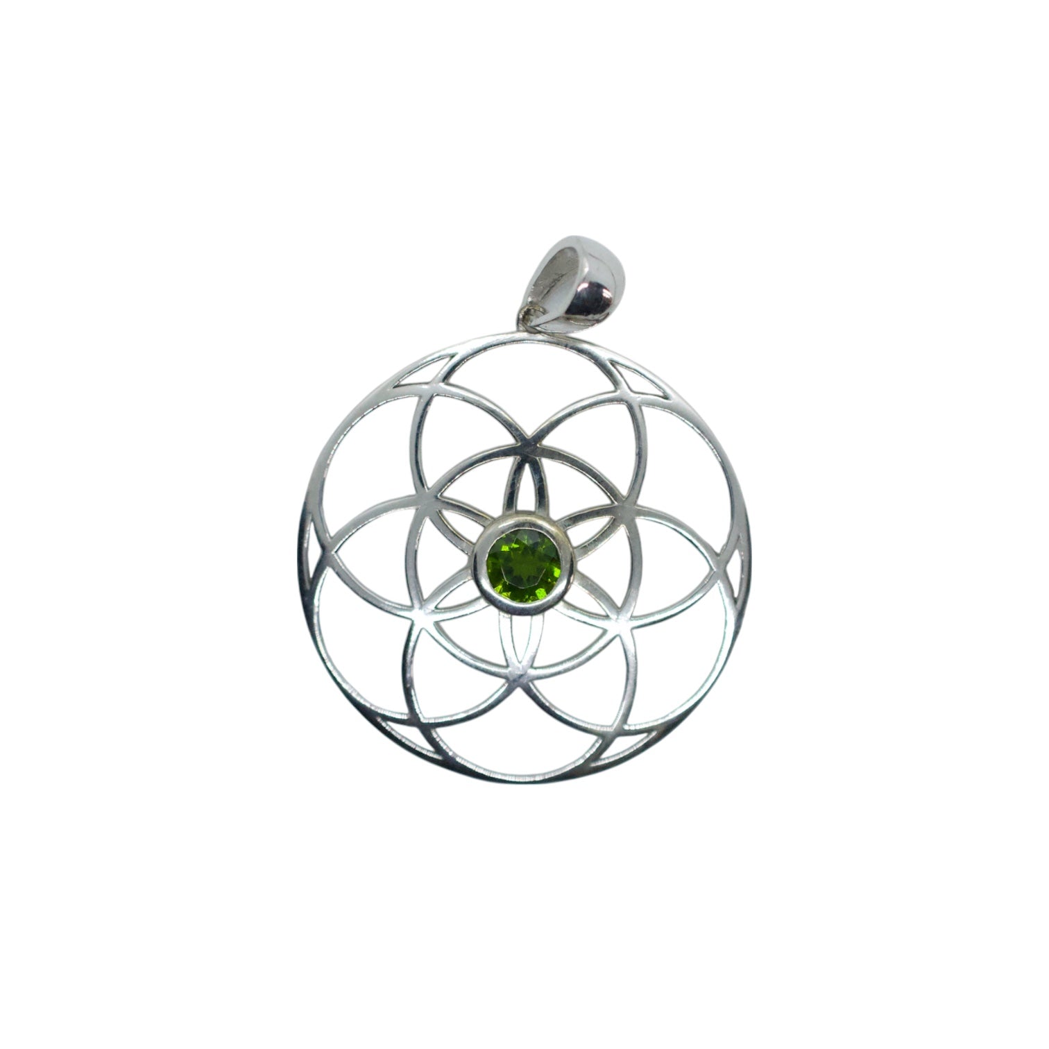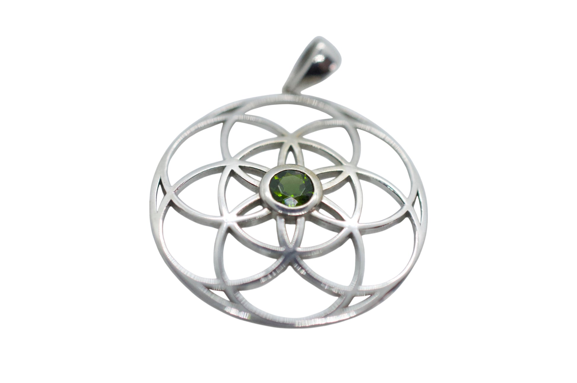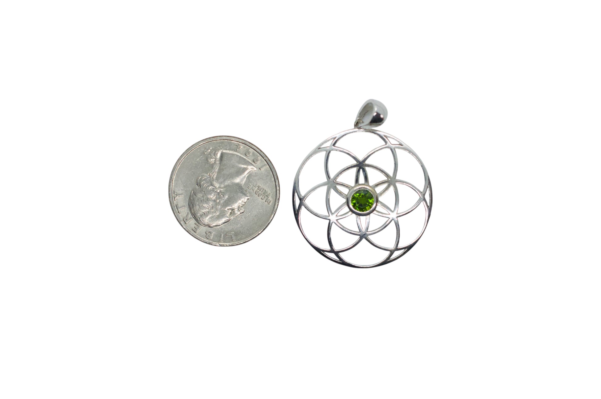 Green Chrome Diopside Sterling Silver Seed of Life Pendant