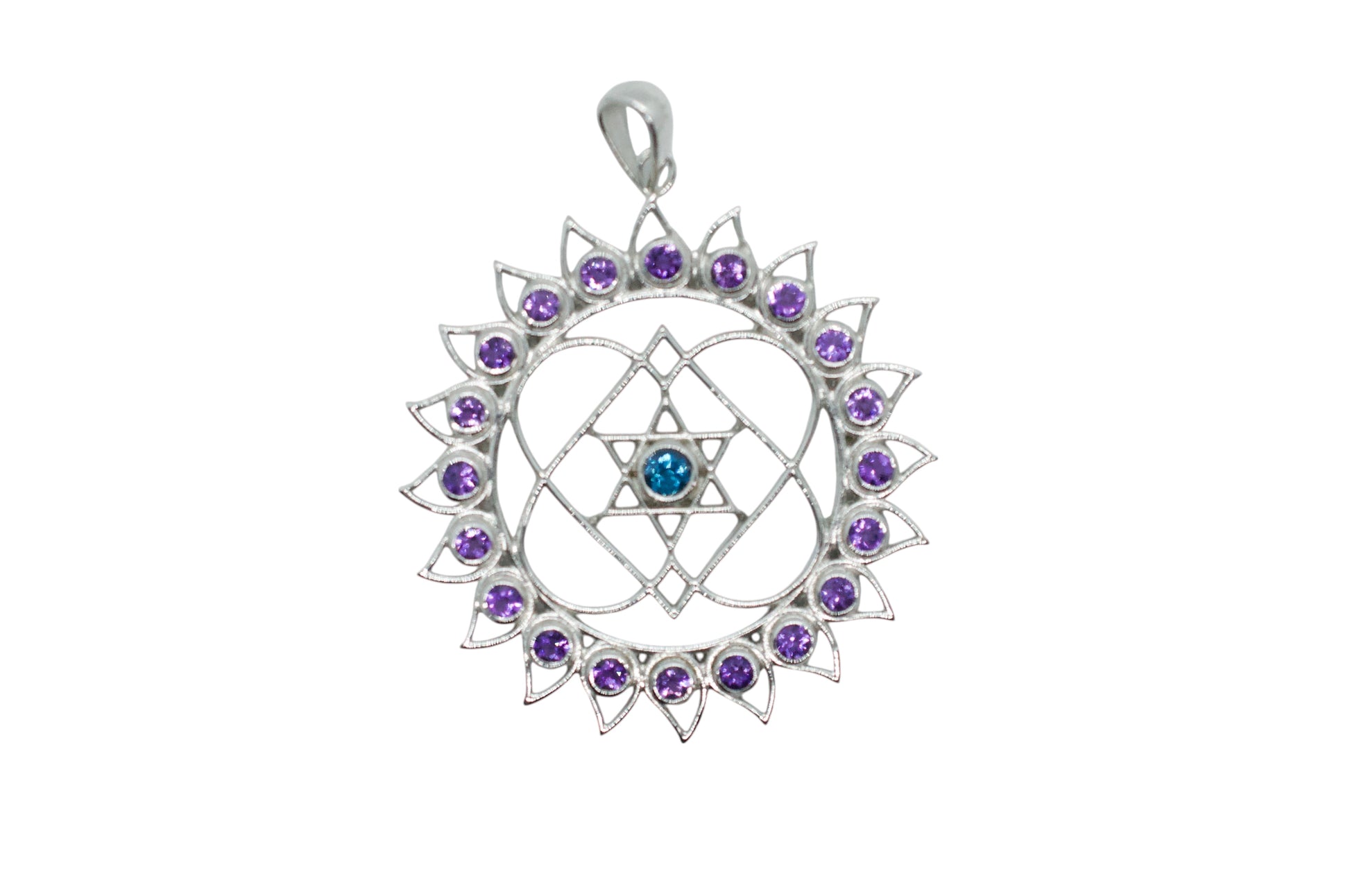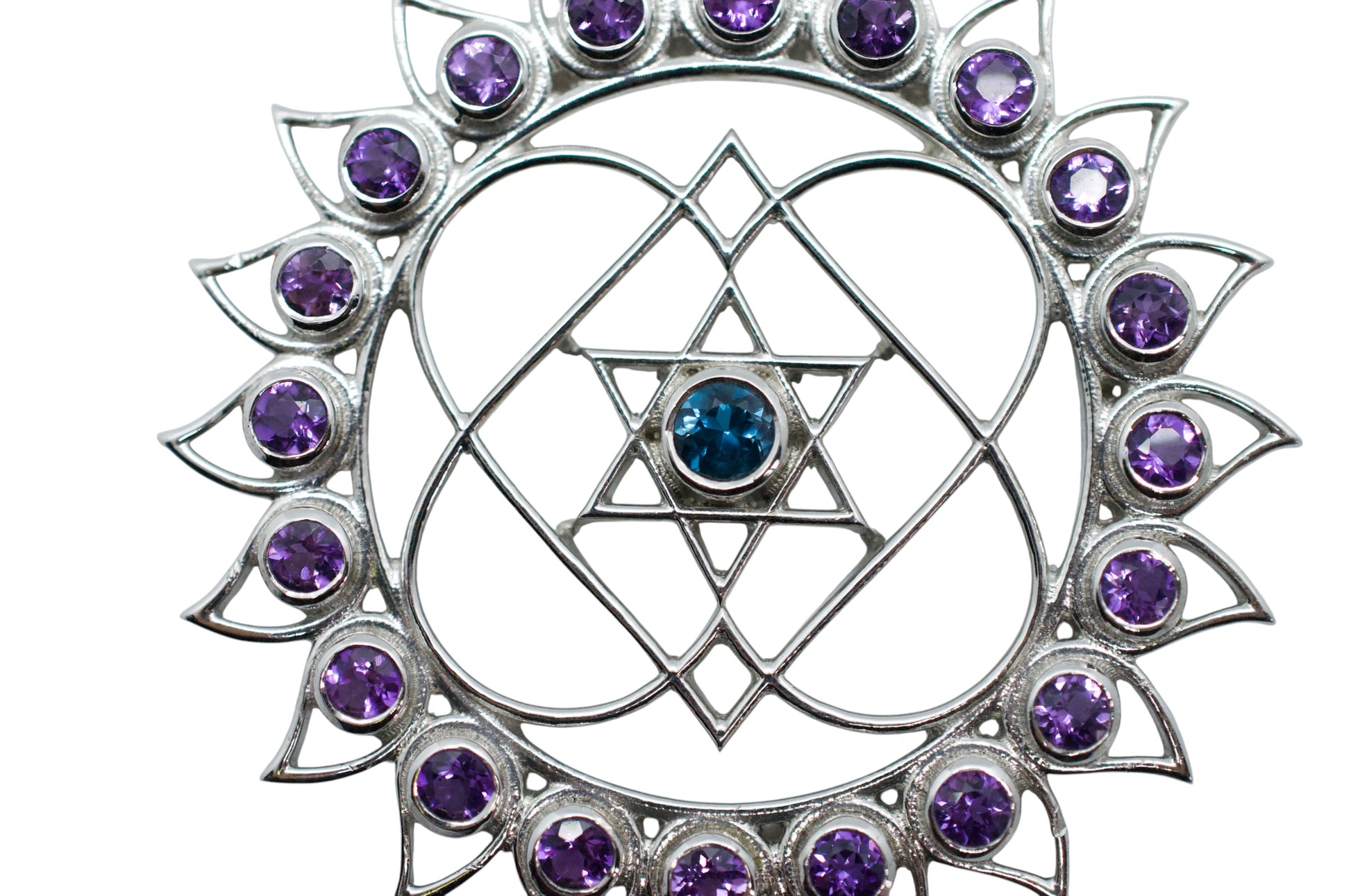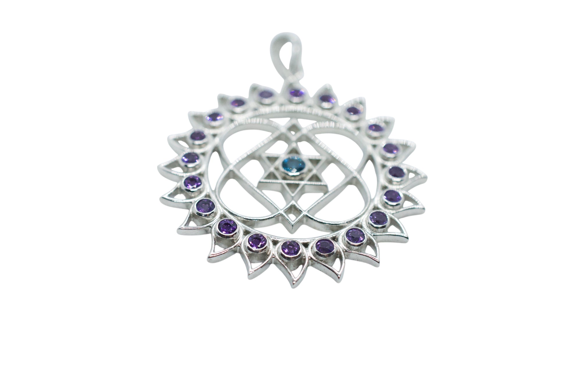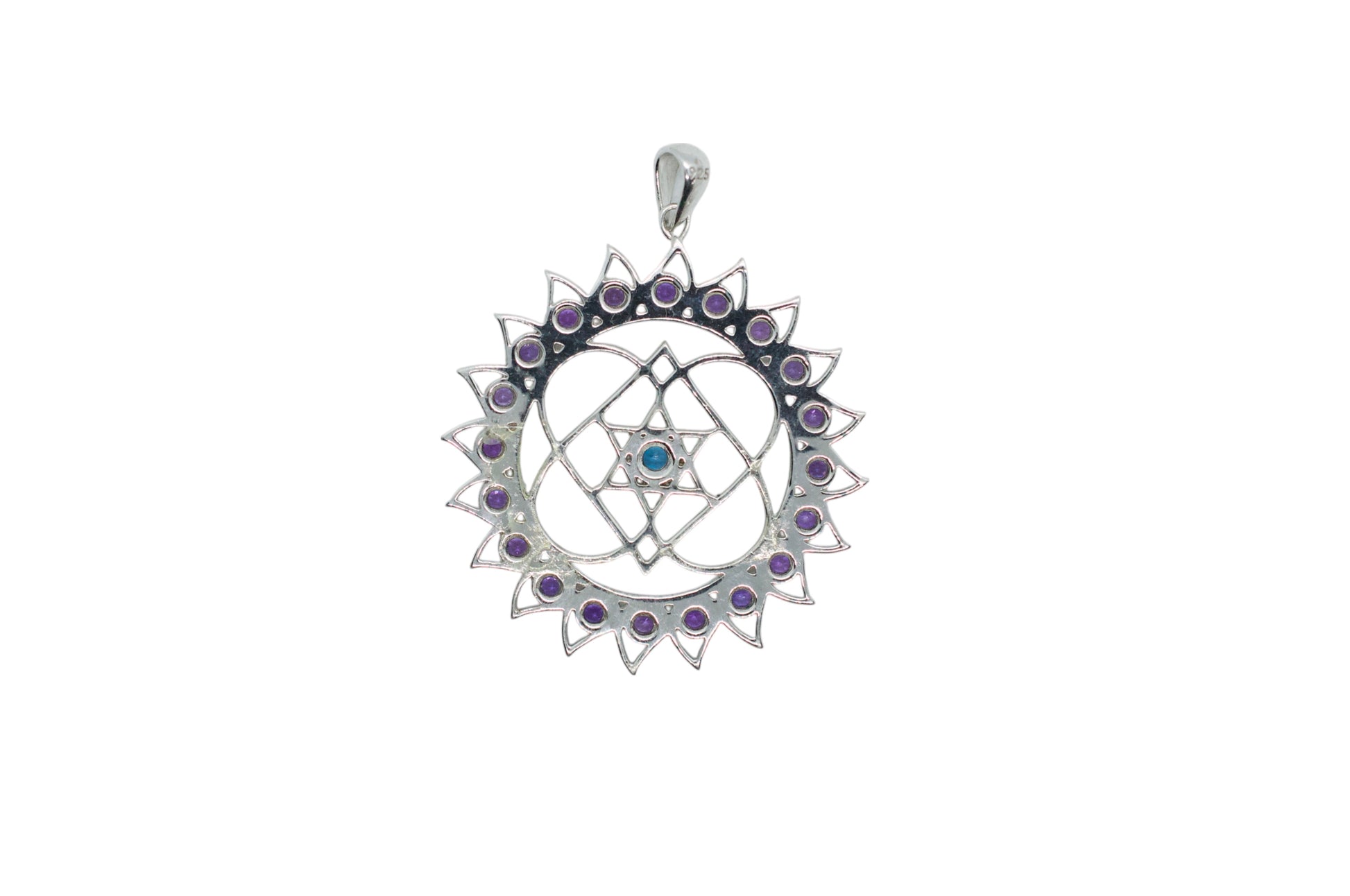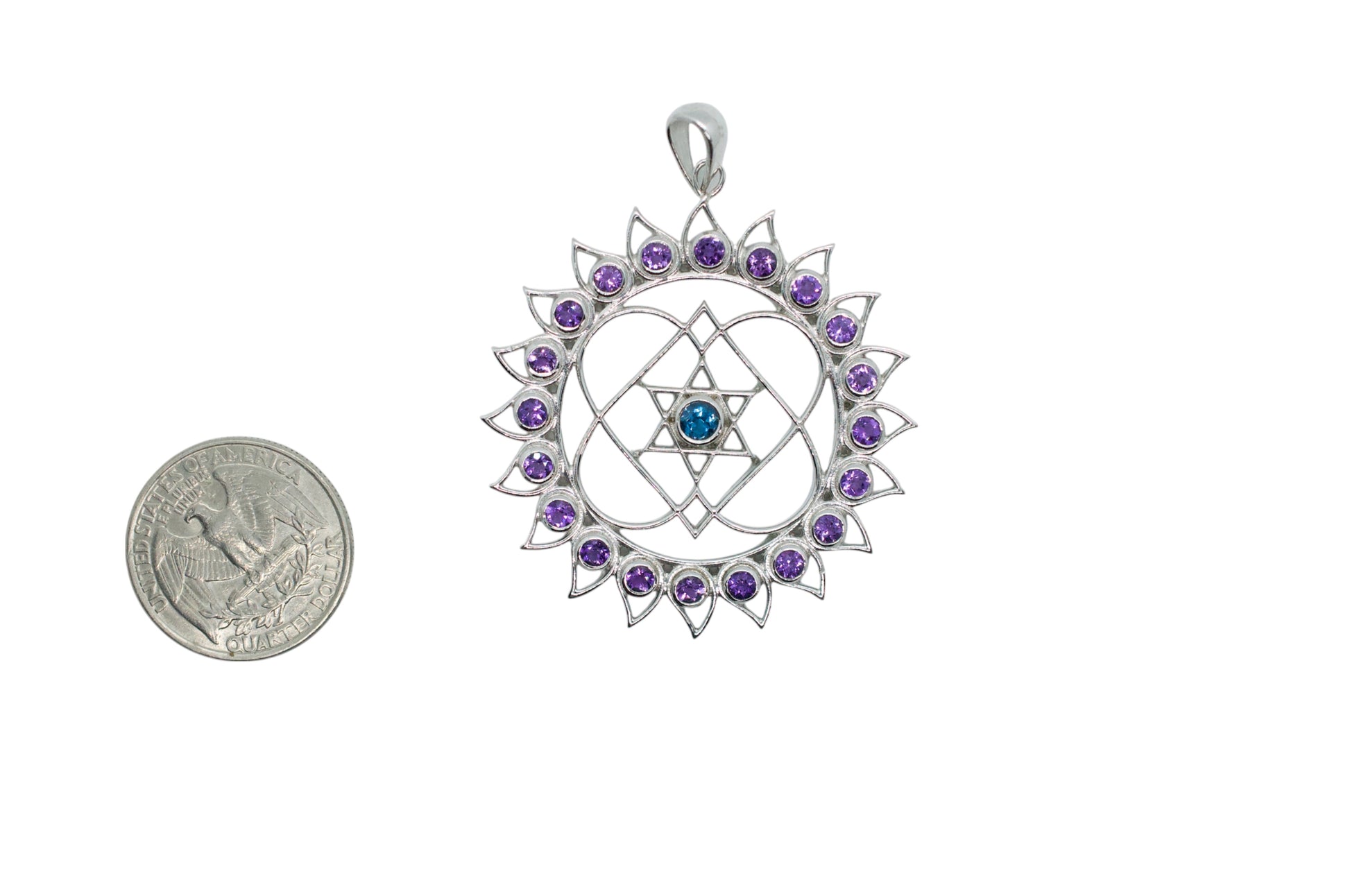 Heart Lotus Mandala Amethyst & Topaz Silver Necklace