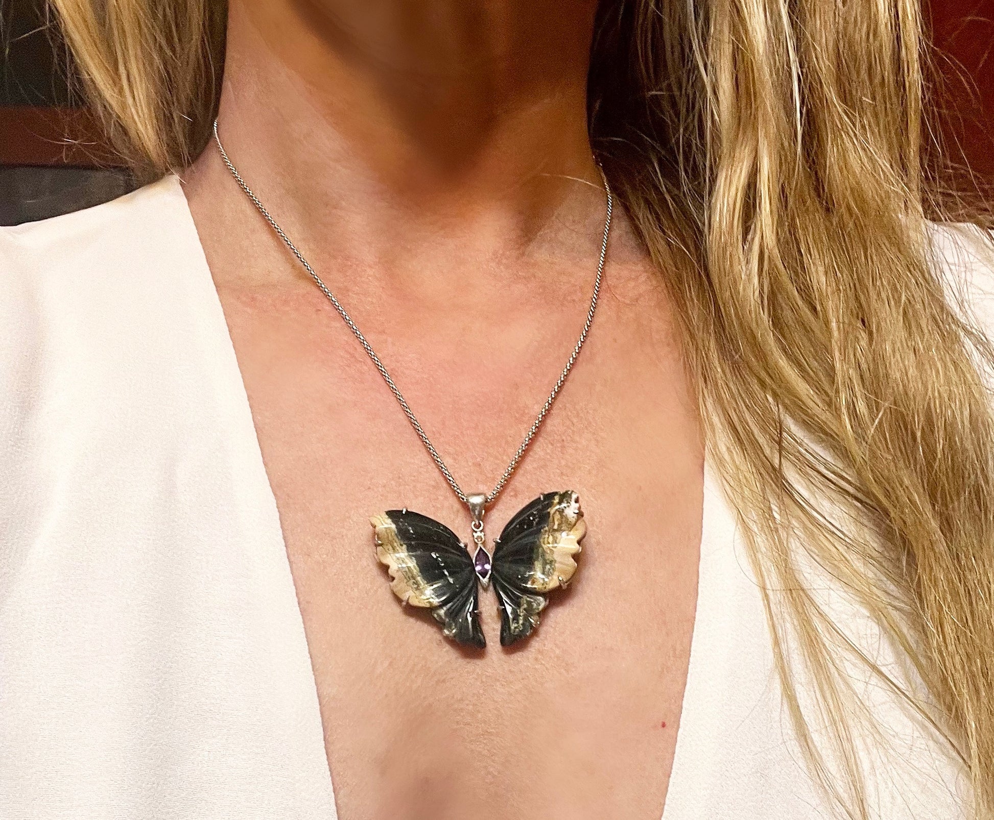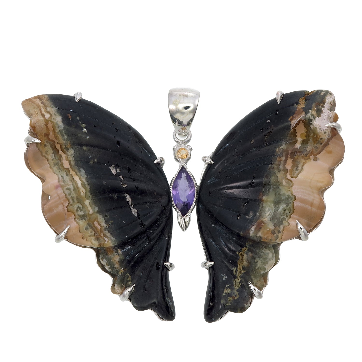 Jasper Butterfly with Amethyst Sterling Silver Necklace