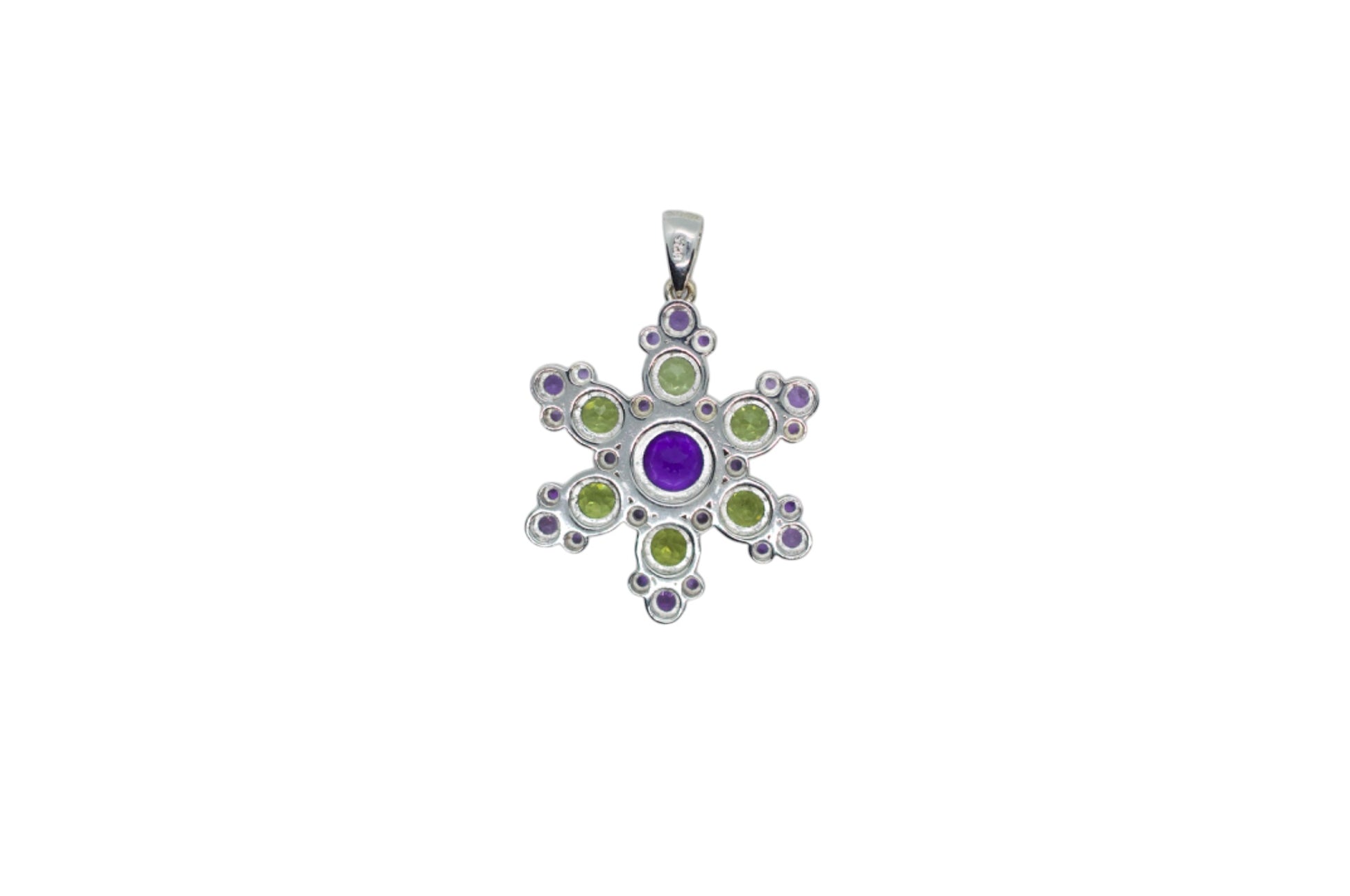 Kaweah Purple Amethyst & Green Peridot Snowflake Mandala Pendant