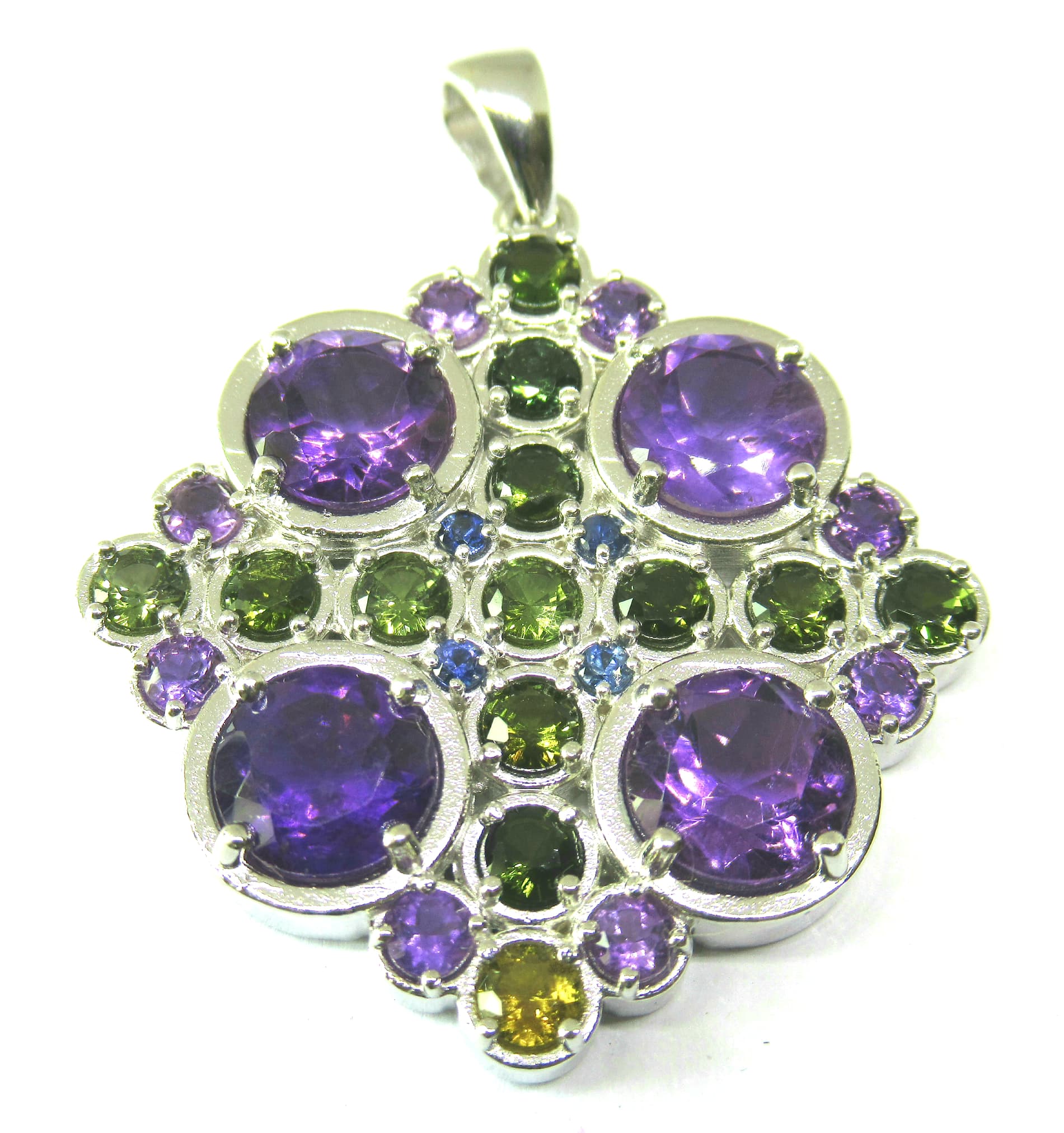 Jung Mandala Amethyst & Tourmaline Sterling Silver Necklace #5