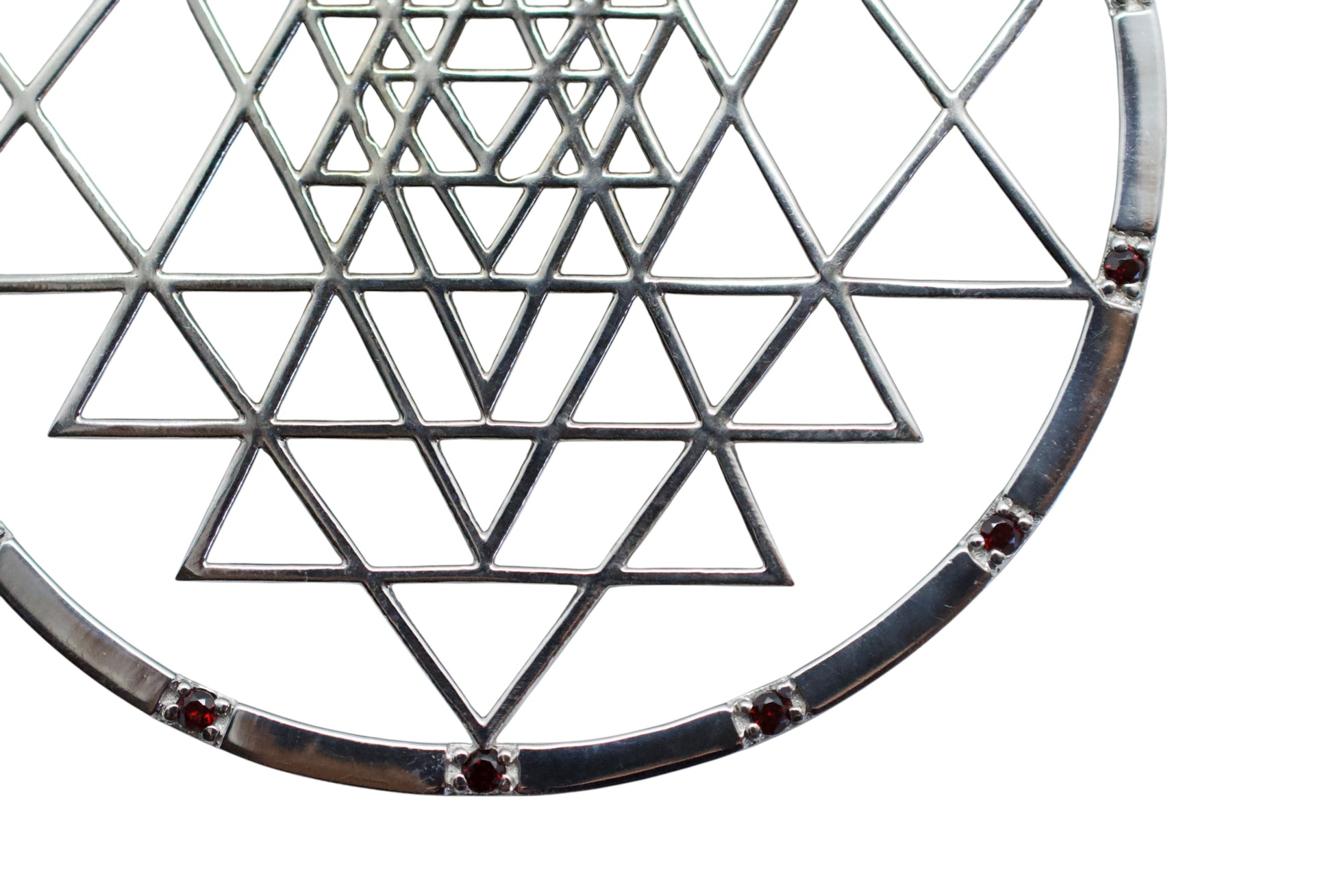 Large Sri Yantra ~ 40mm ( 1.5" ) with 14 rubies set in border.
