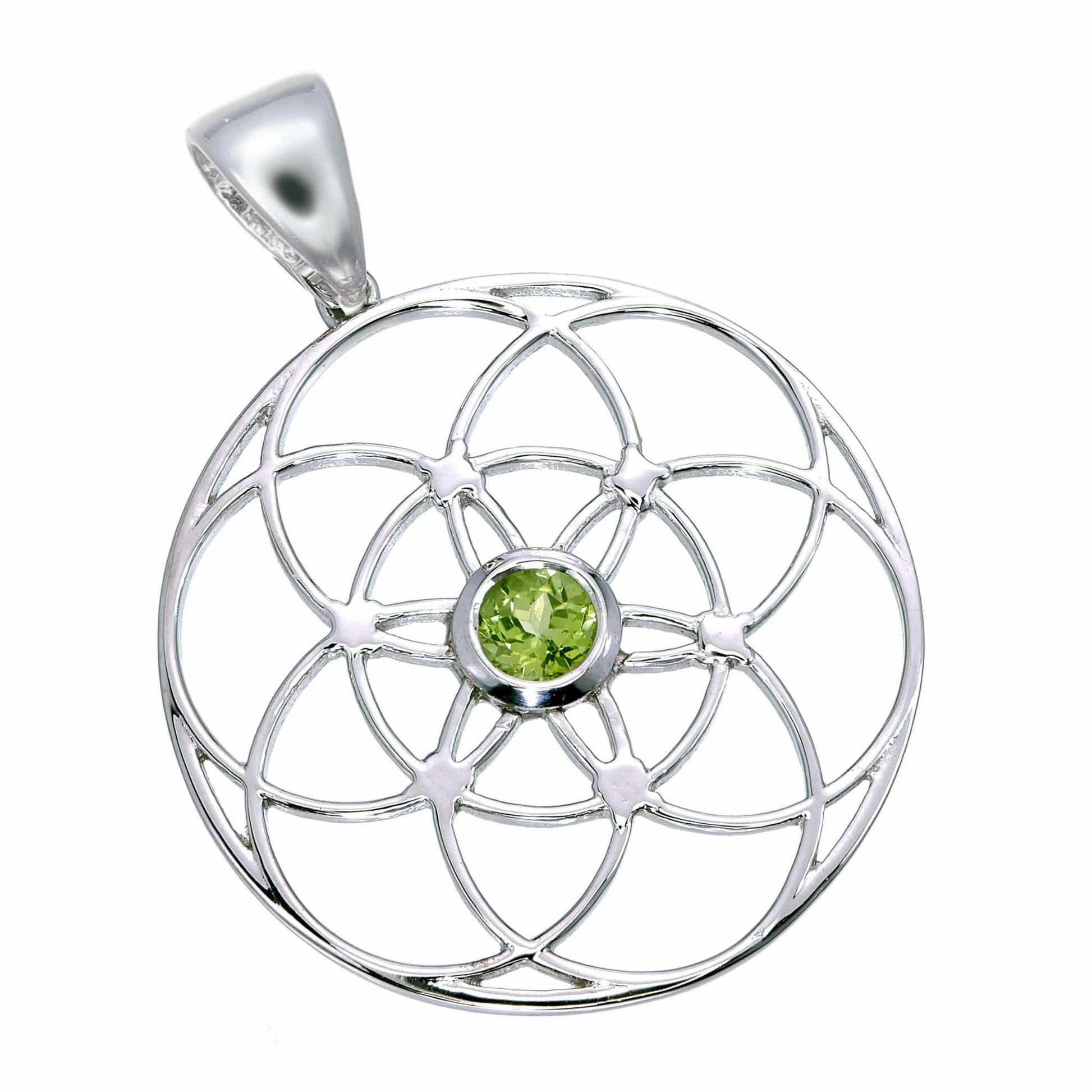 Seed of Life Sterling Silver Pendant with Green Peridot