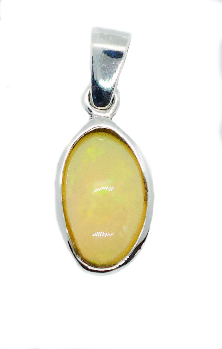 This beautiful little Ethiopian opal is set in sterling silver. Ancient Romans thought that opals were the most powerful gemstones because they contain so many colors. Bedouins believed opals contained lightning.
