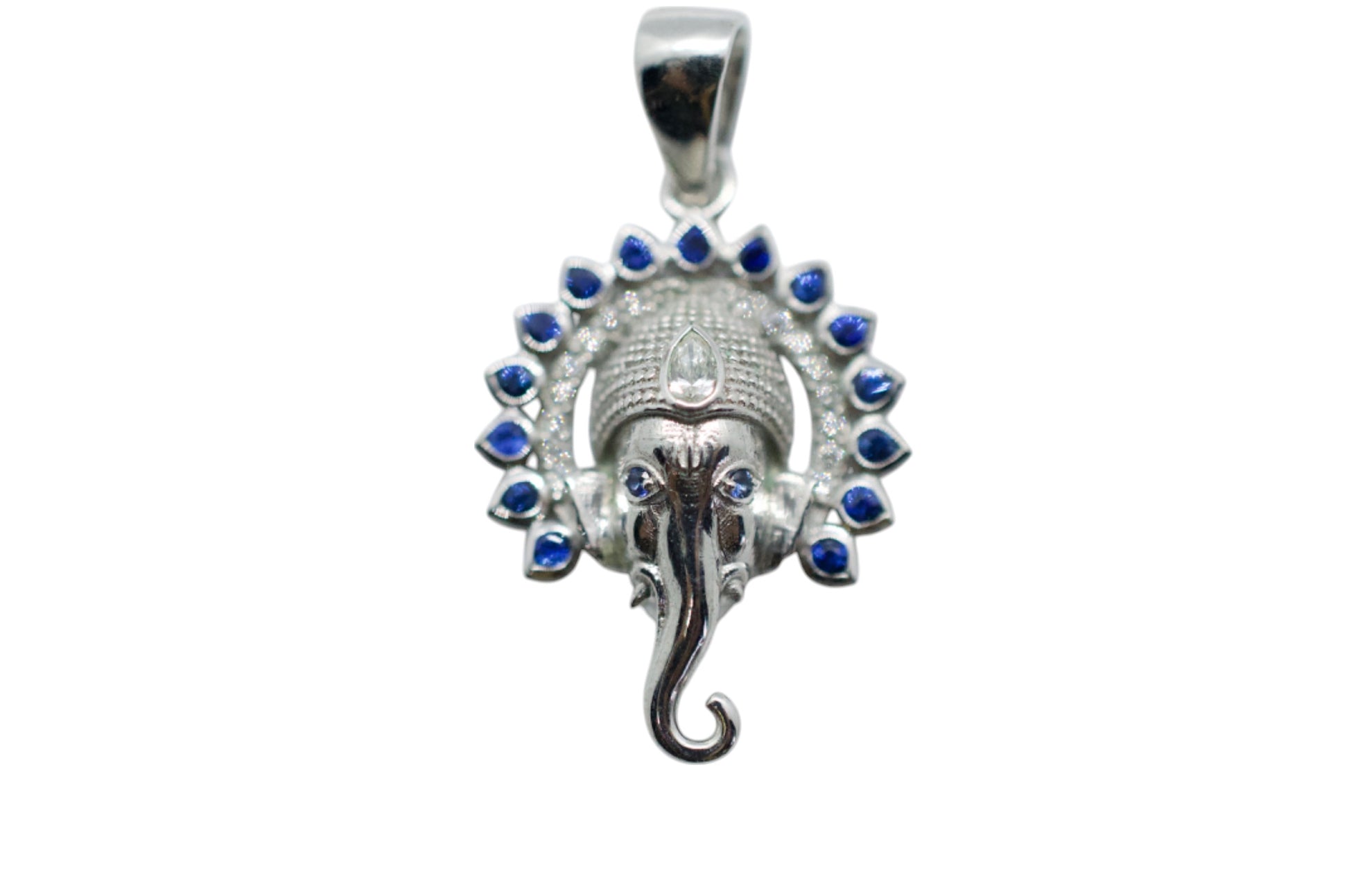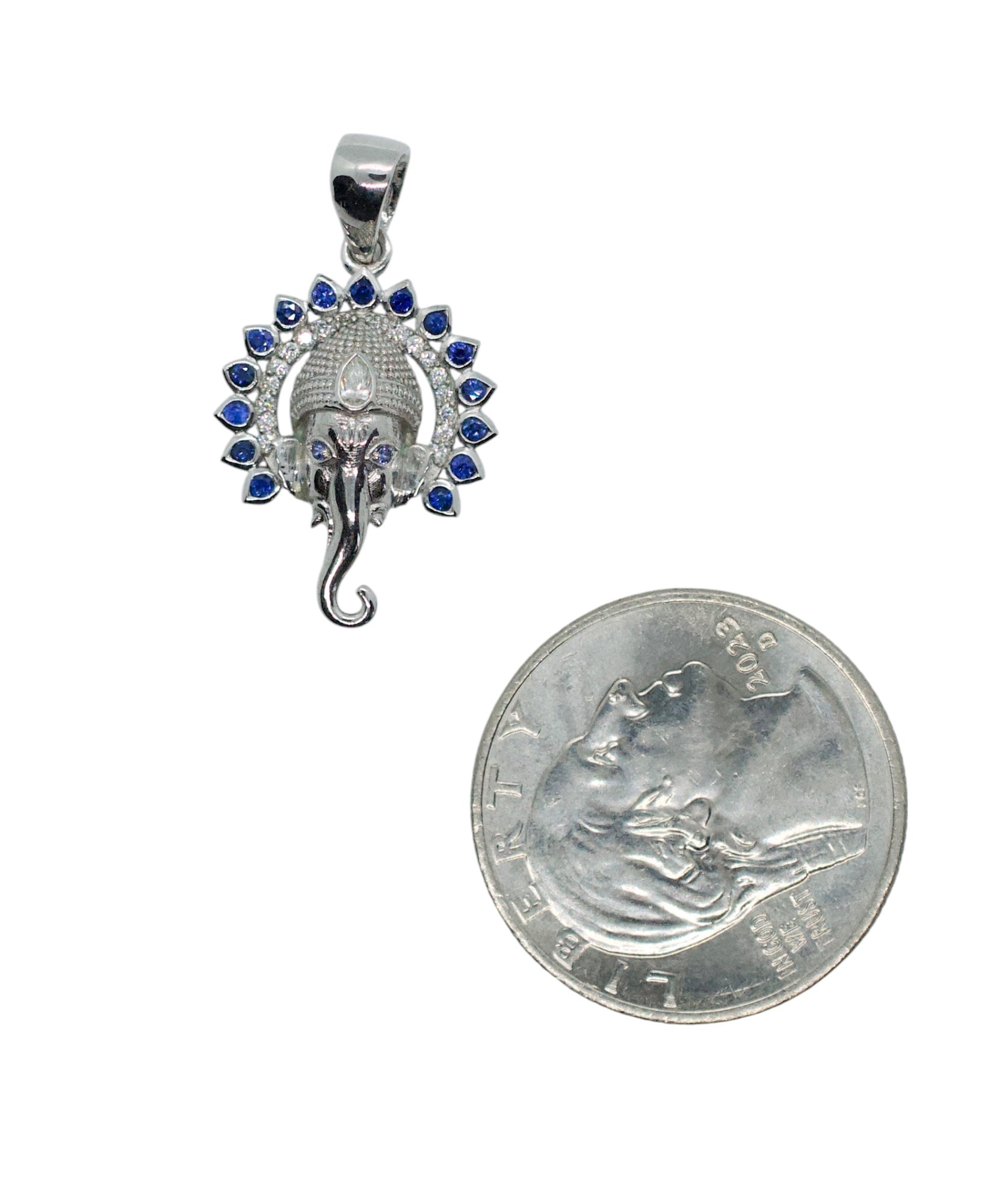 Small Jai Ganesha Sterling Silver Pendant Blue Sapphires and Diamond