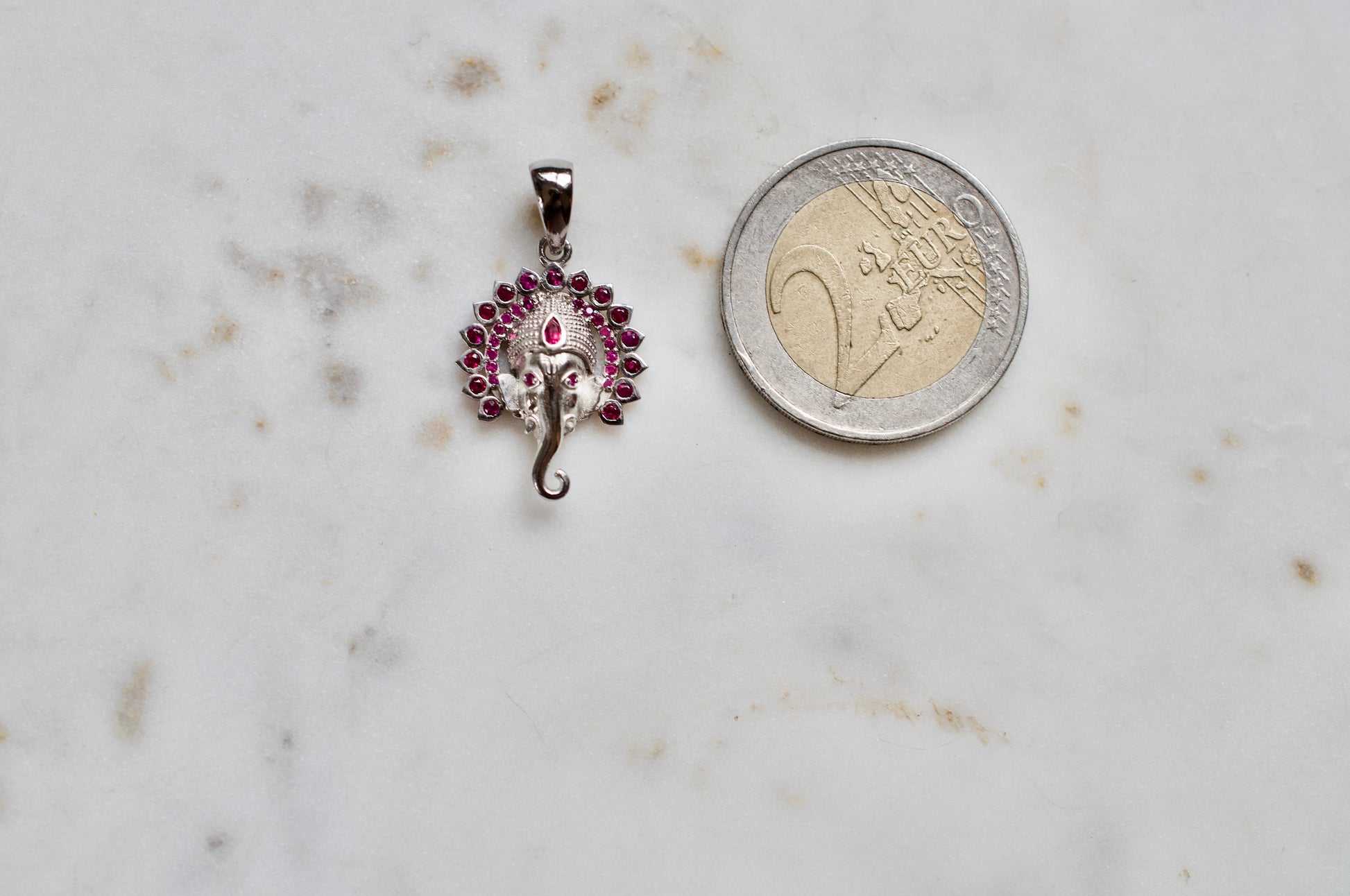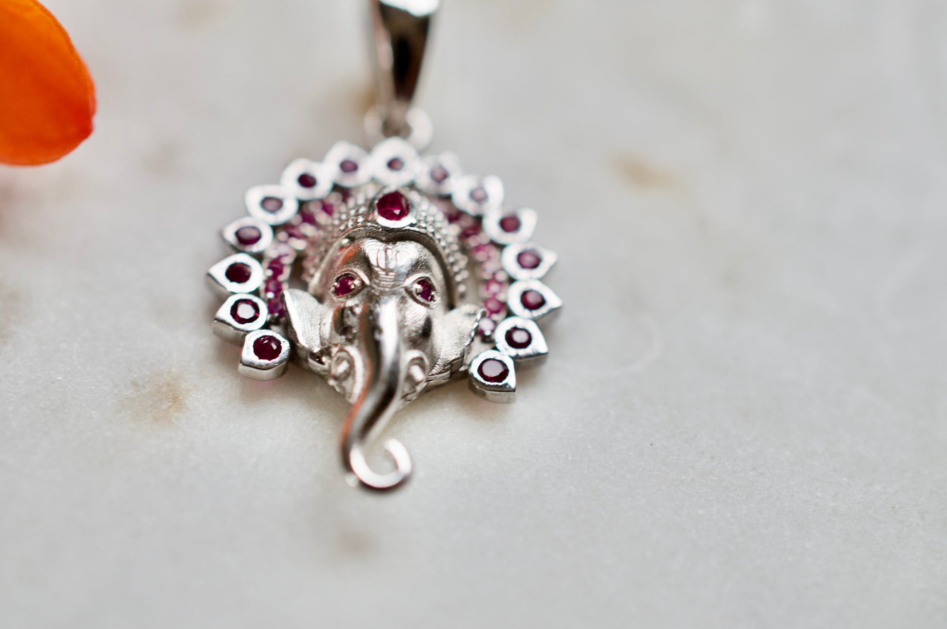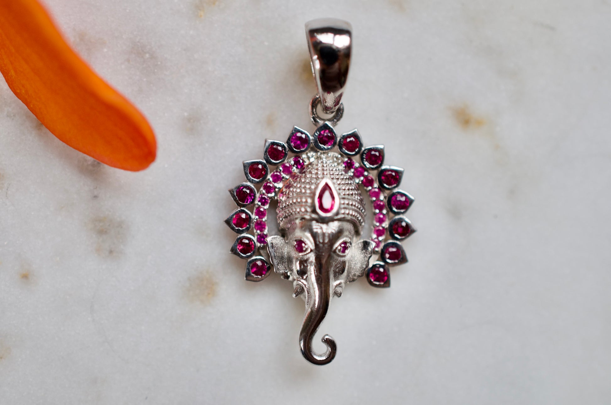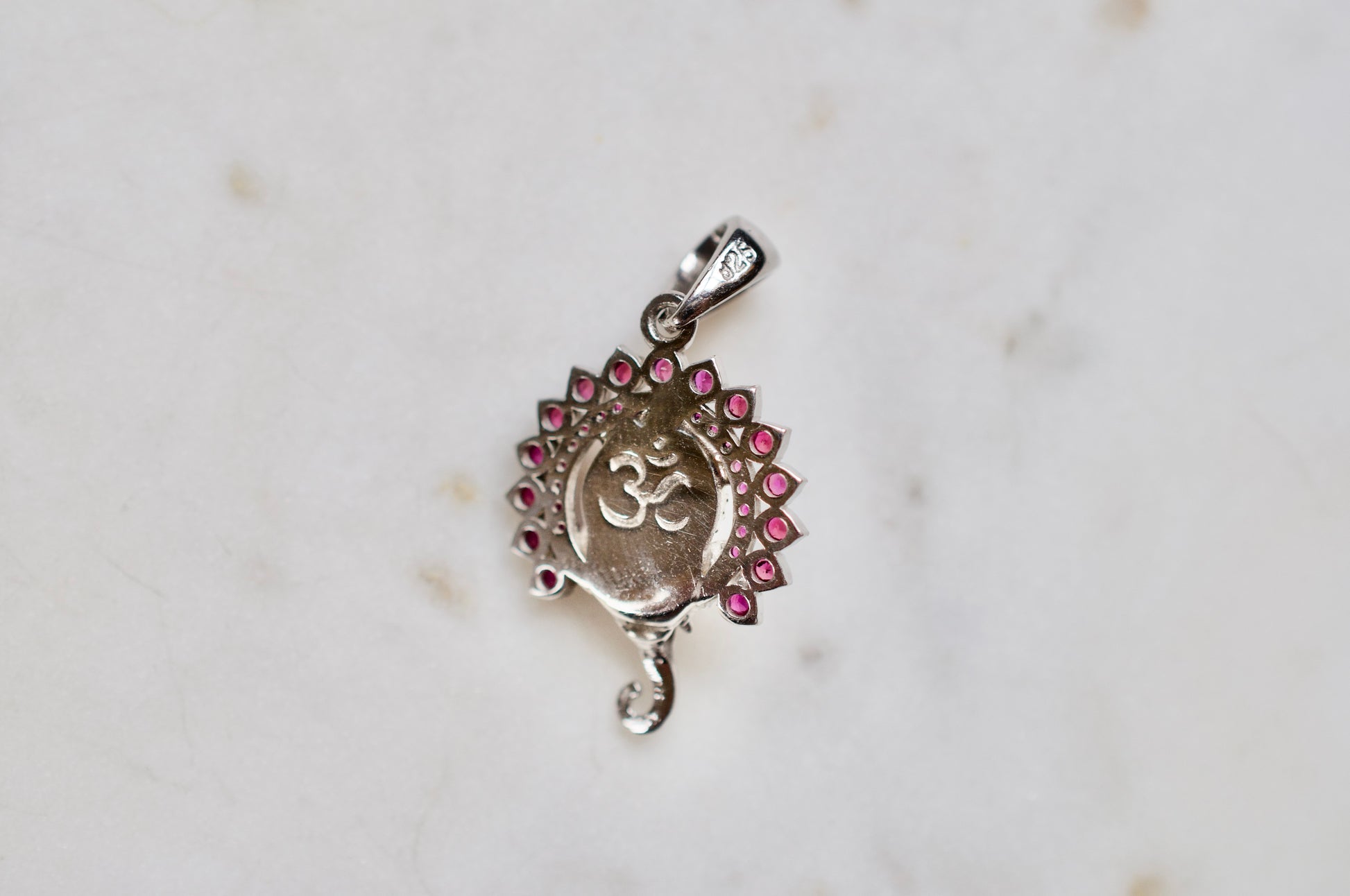 Small Jai Ganesha Sterling Silver Pendant with Rubies