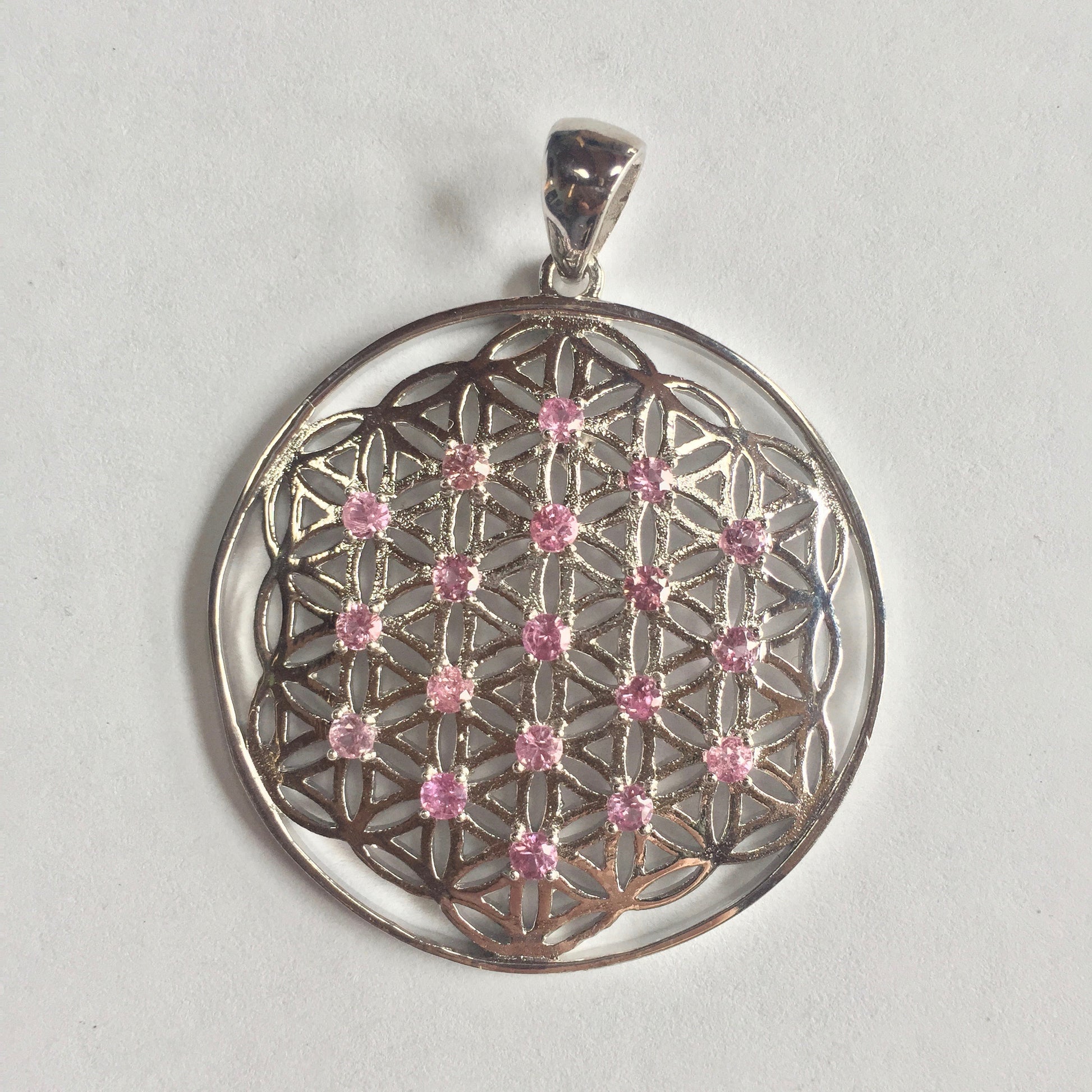Sterling Silver Flower of Life Pendant with Pink Sapphires