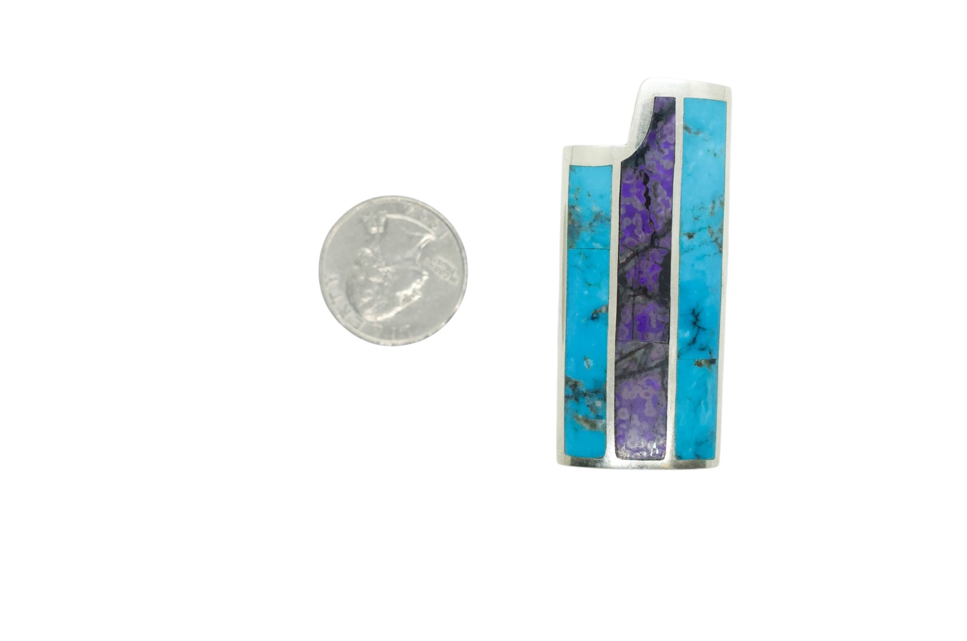 Sterling Silver Turquoise & Sugilite Small Lighter Cover