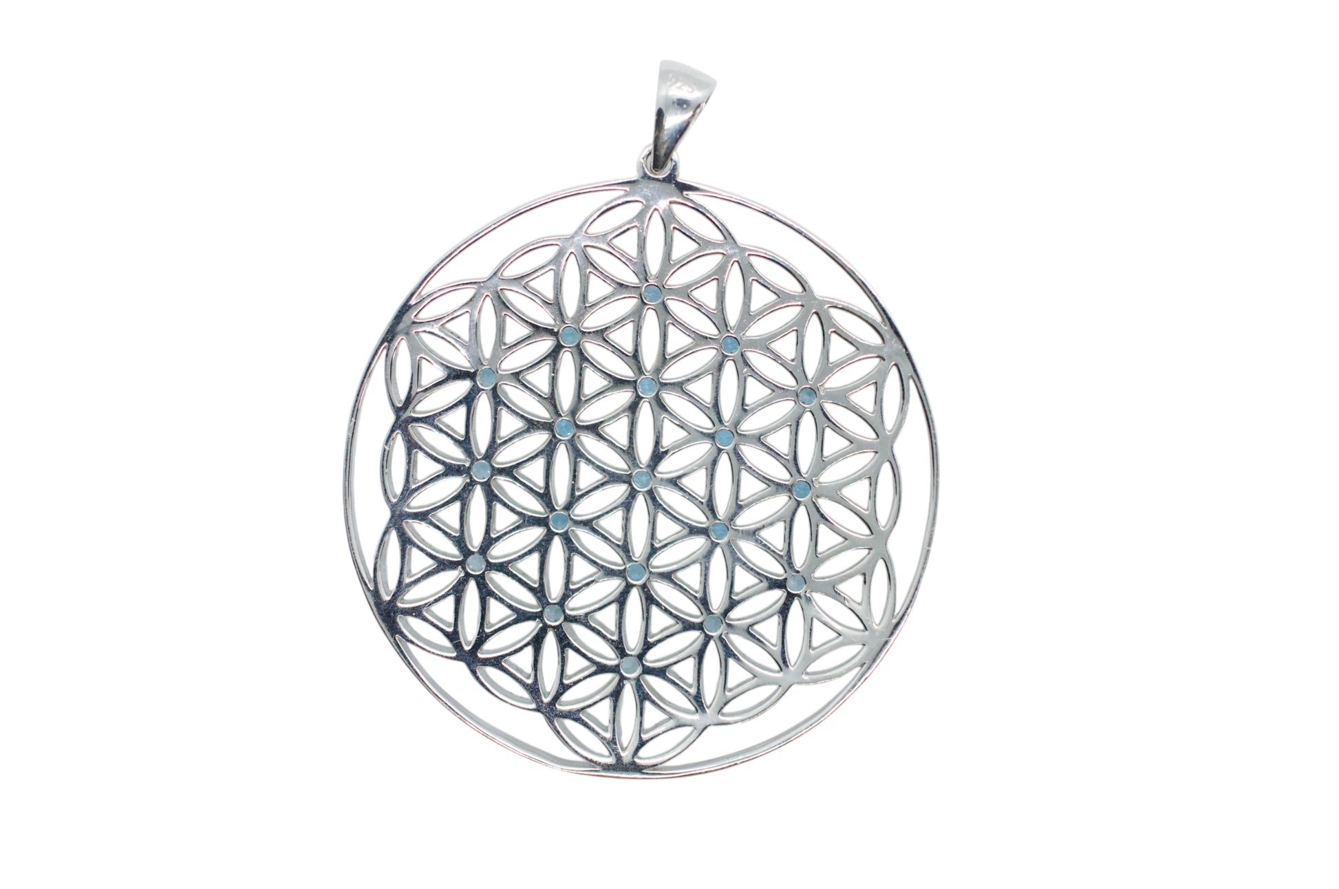 We made this x-large version of our Flower of Life pendant to show of these vibrant blue gems. It has the power of gem healing found in all of our spiritual jewelry.