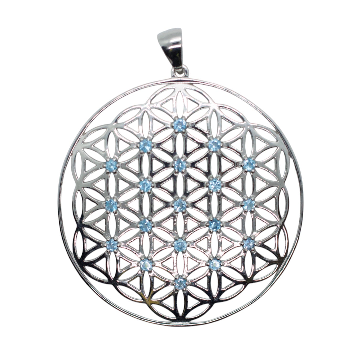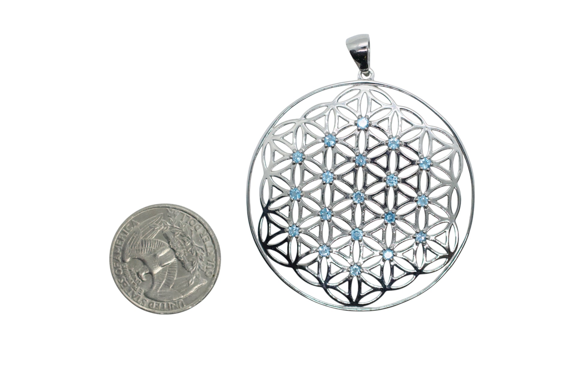 Swiss Blue Topaz XL Flower of Life Sterling Silver Necklace