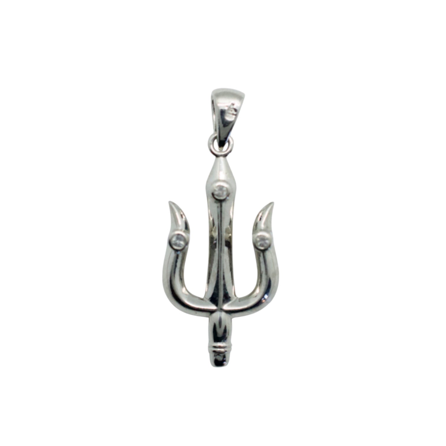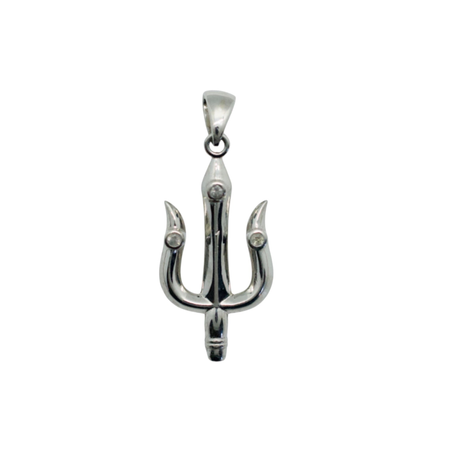 Shiva's Trishul Trident Sterling Silver Pendant Double Sided Natural White Zircon